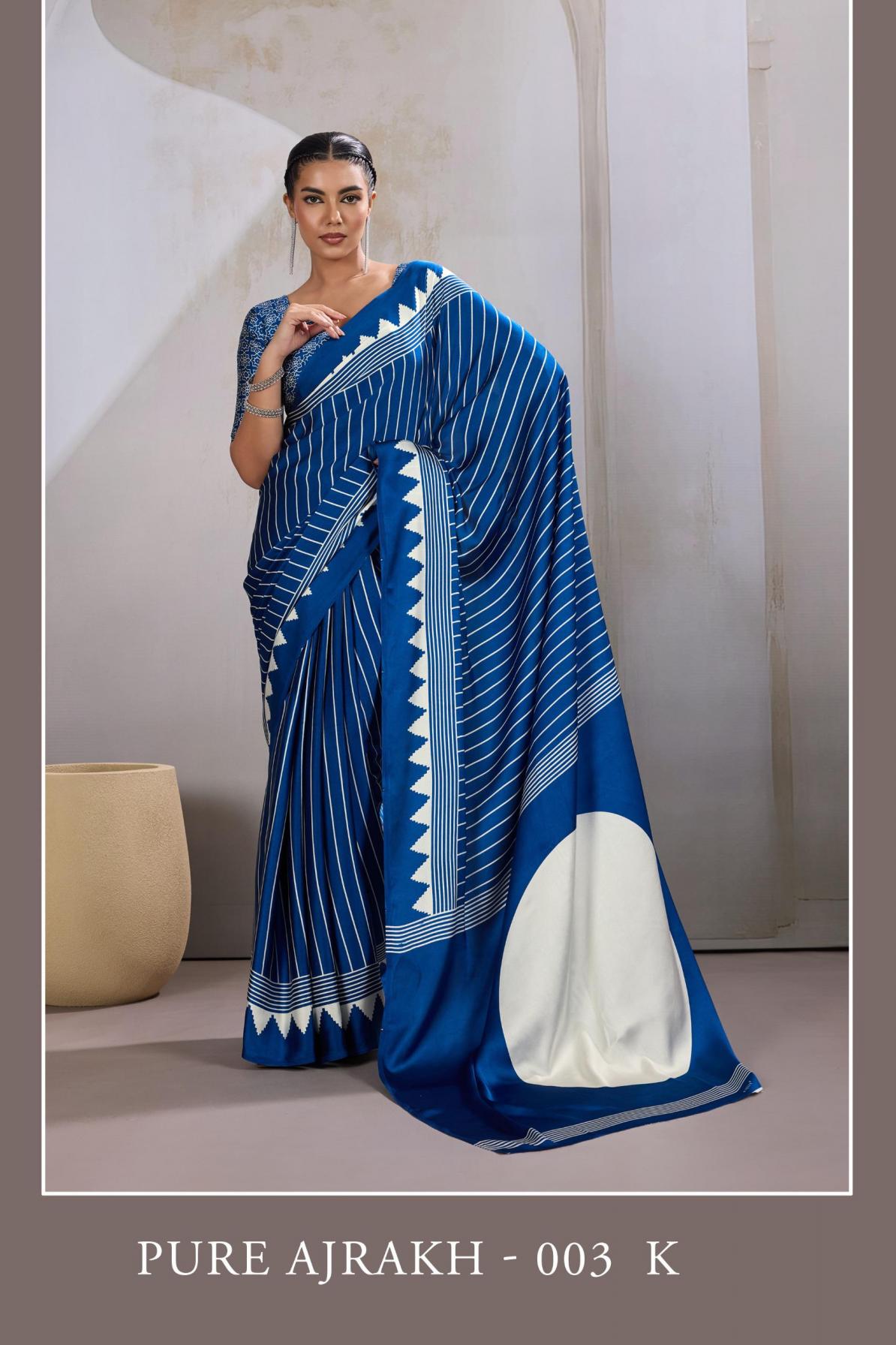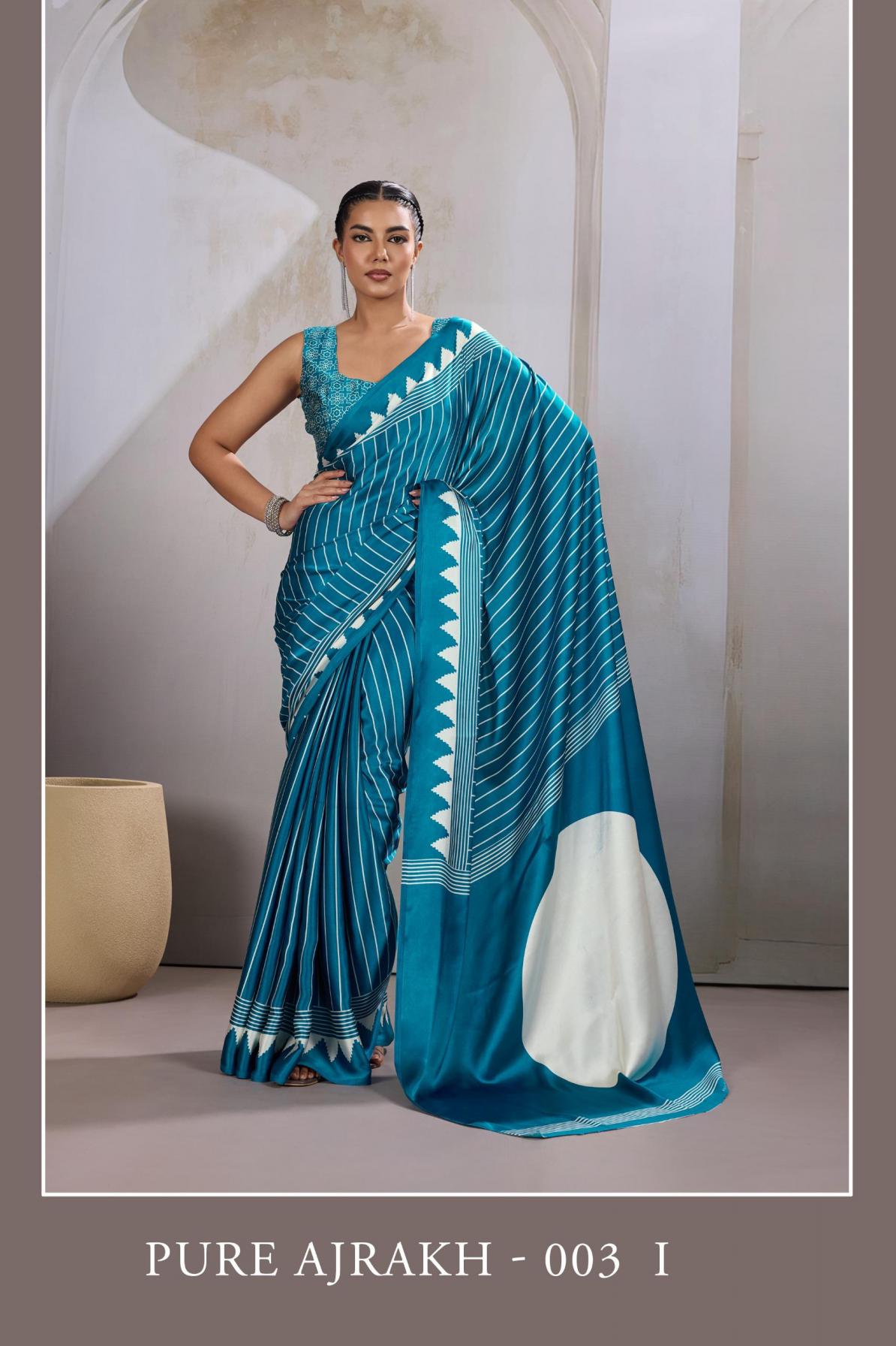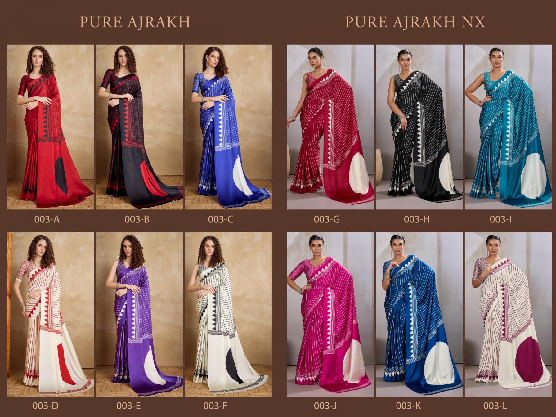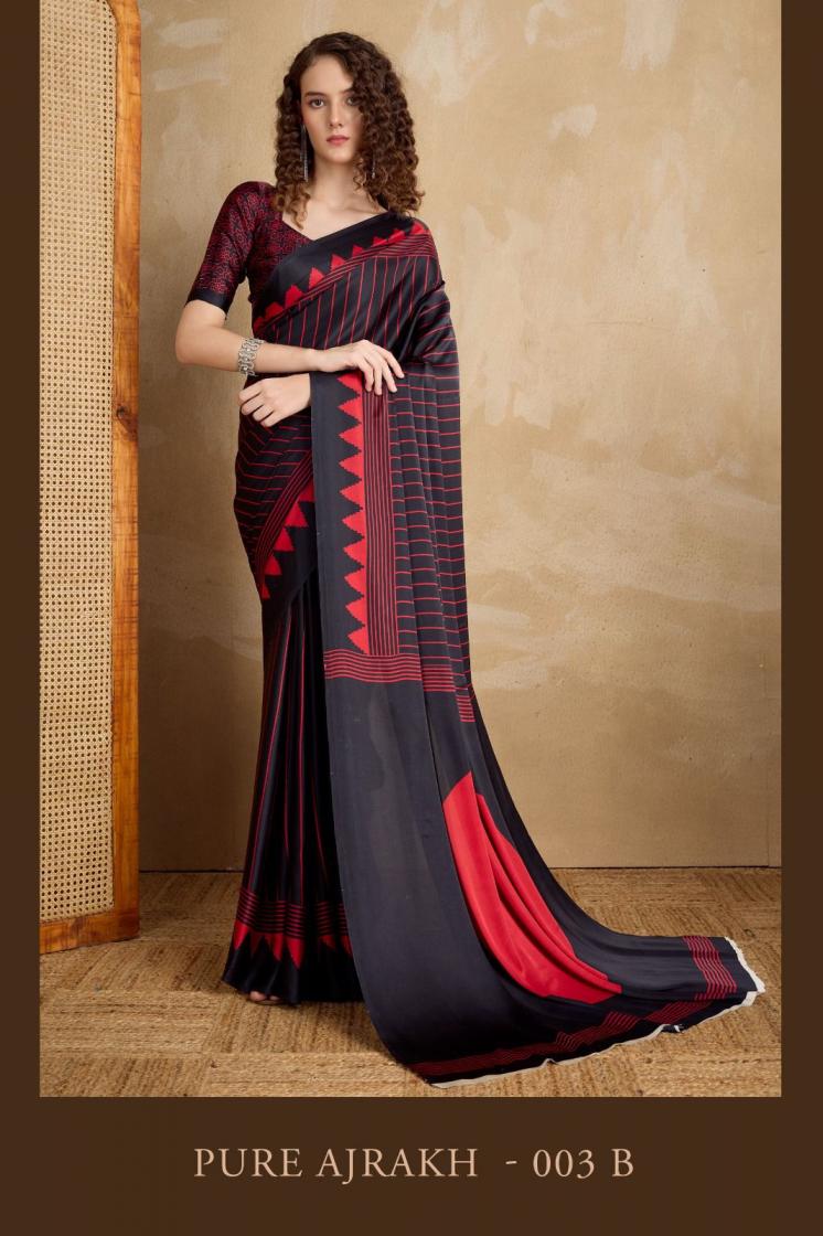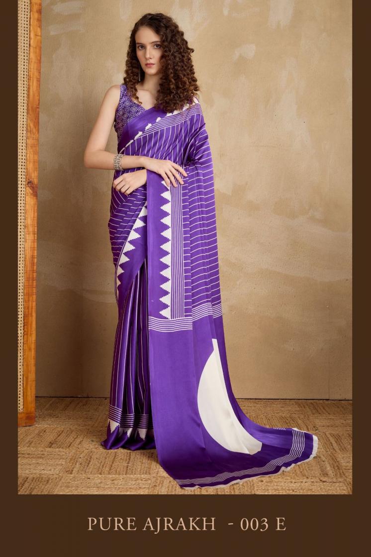 Brand : Rajtex Catalog: Pure Ajrakh Nx Series : 003 A TO 003 L Saree : Modal Satin Ajrakh Print Saree Blouse : Modal Satin Ajrakh Print Saree* Price : 555/- +5%GST Occasion : Uniform Wear ,Casual Wear, Carnival Wear |