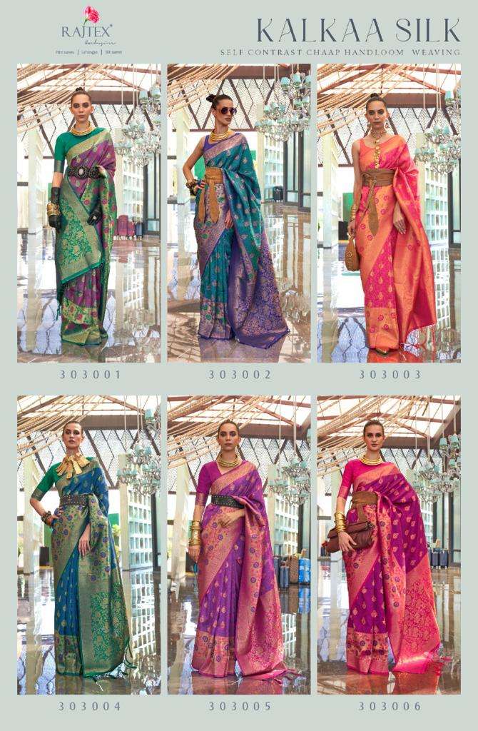 rajtex present kalkaa silk 303001-303006 series handloom weaving silk function wear sarees supplier