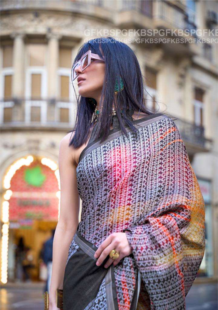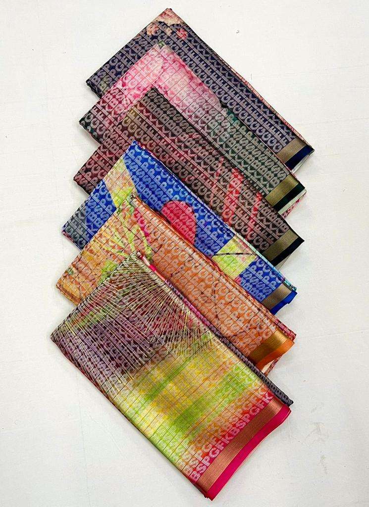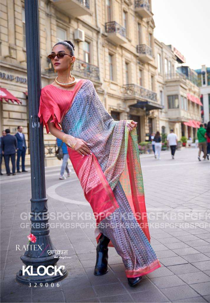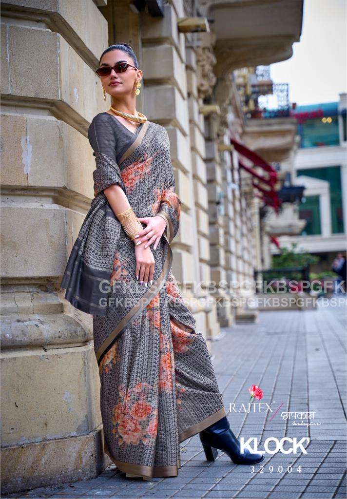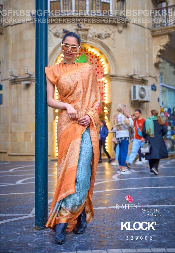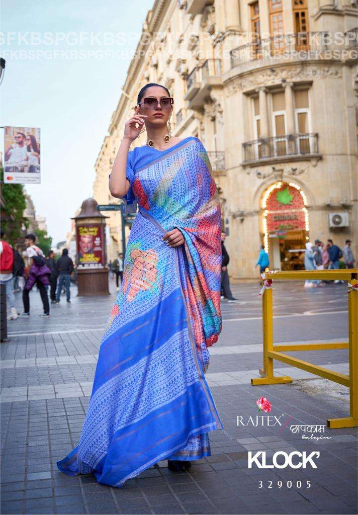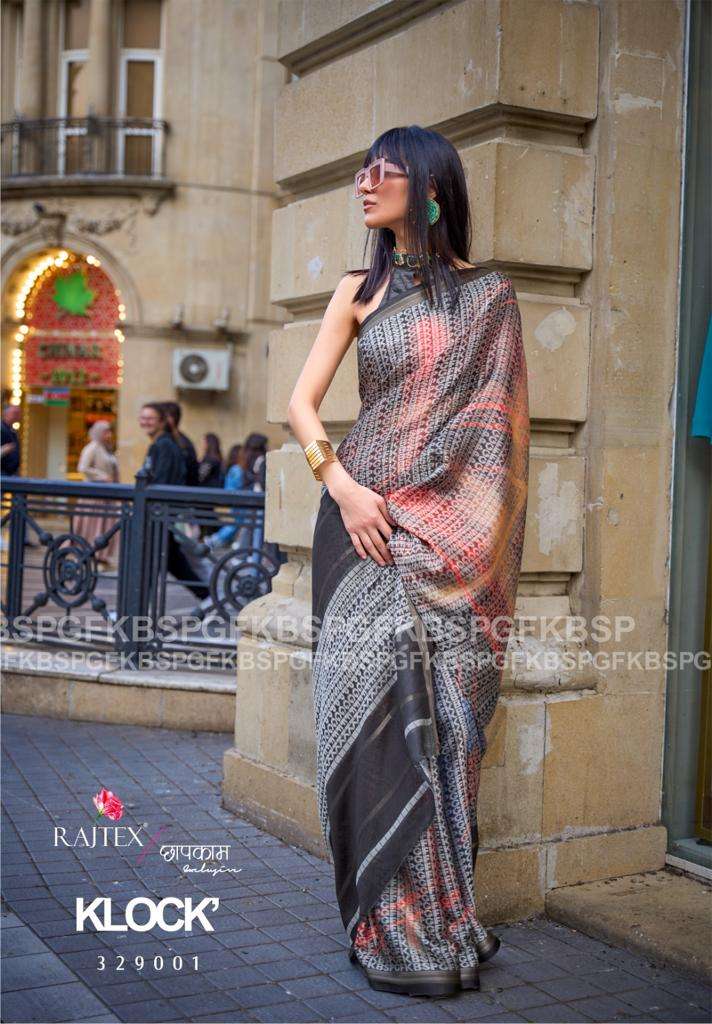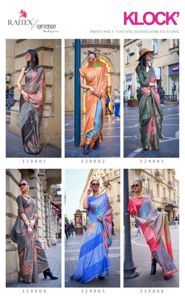 rajtex present klock 329001-329006 print poly viscose handloom weaving fancy saree collection
