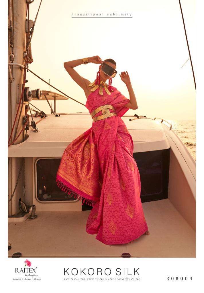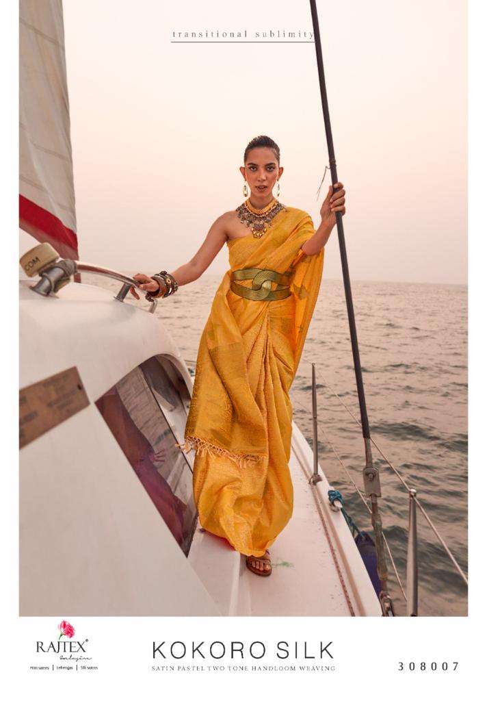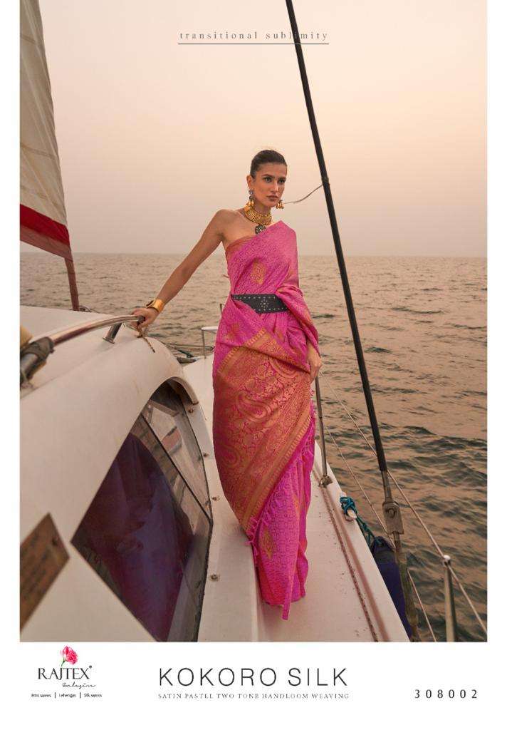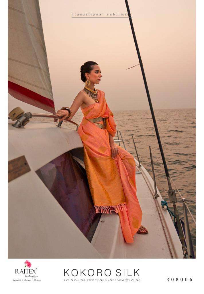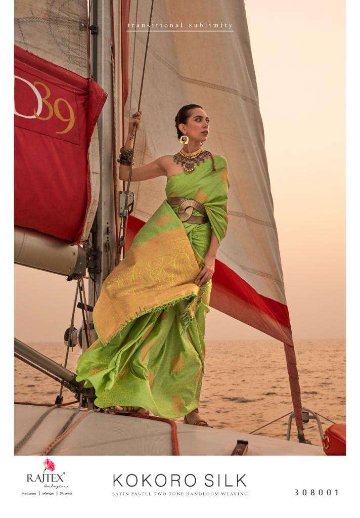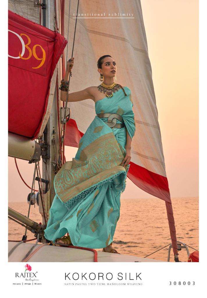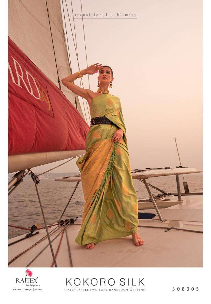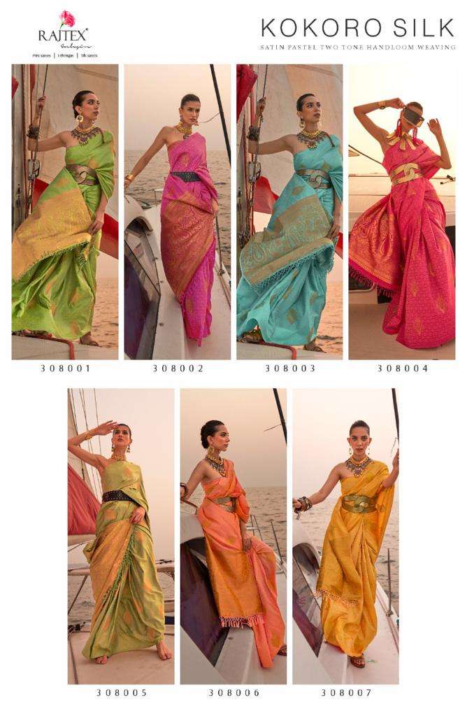rajtex present kokoro silk 308001-308007 series designer satin pastel two tone handloom weaving sarees