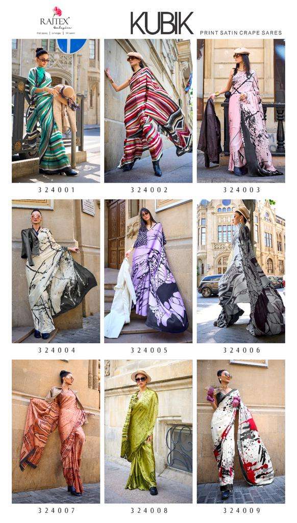 rajtex present kubik 324001-324018 outstanding printed fancy sarees