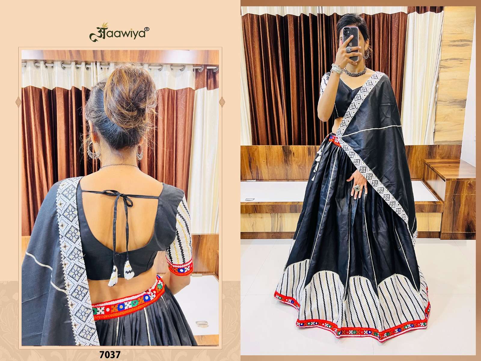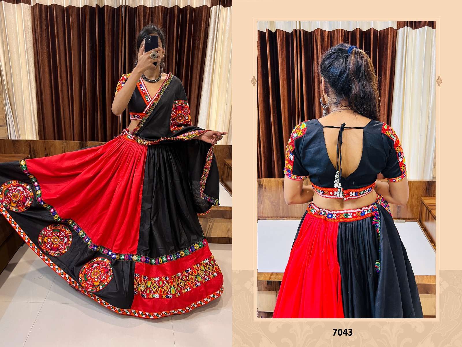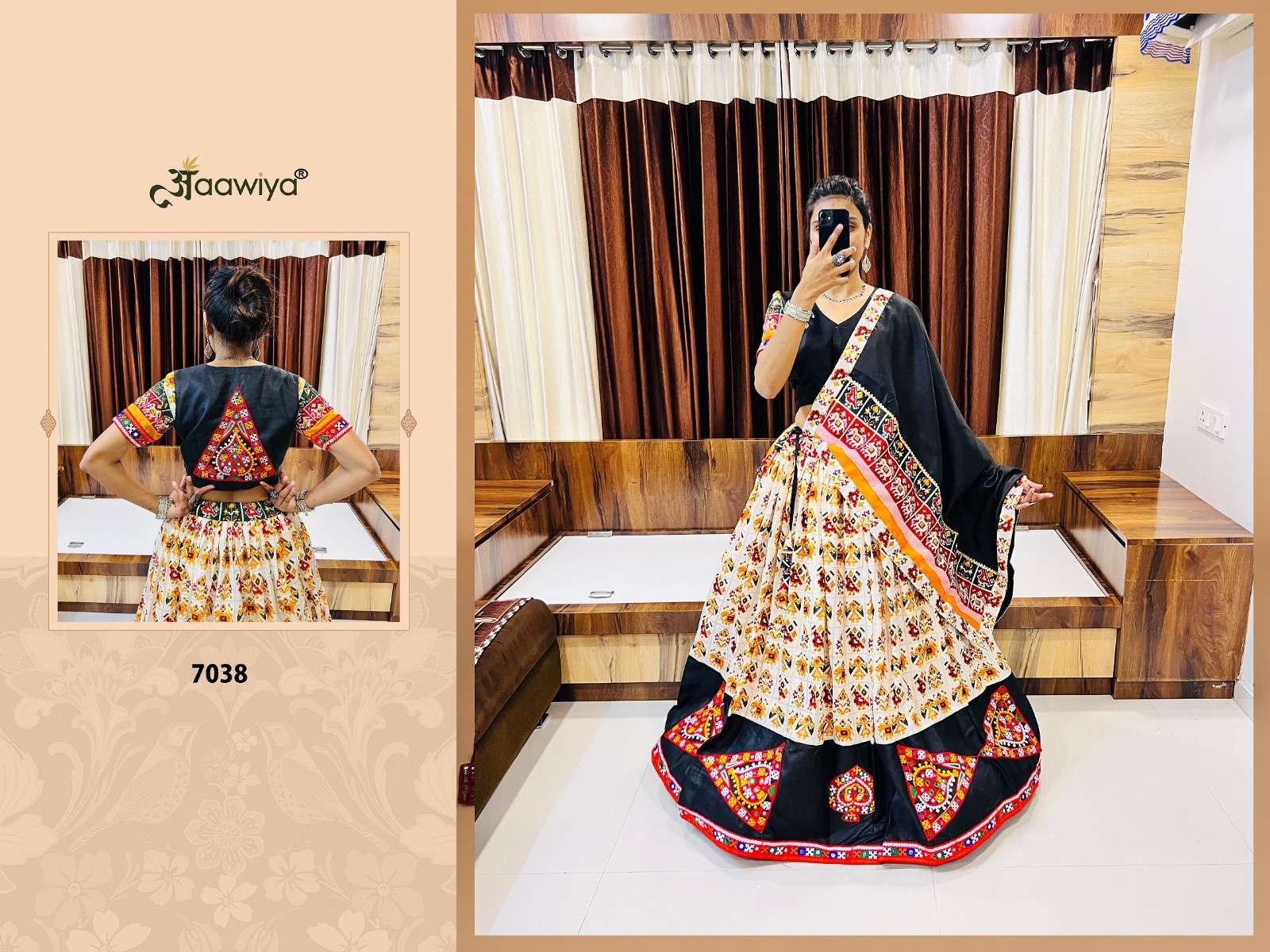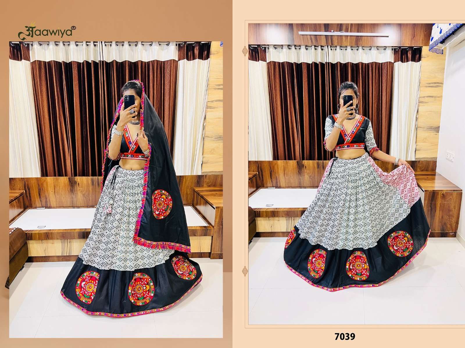 AAWIYA NAVRATRI SPECIAL TRADITIONAL CHANIYA CHOLI COLLECTION 2023 🥁🥢🥢 RAJWADI VOL -7 💐 ORIGINAL PRODUCT 💐 DESIGN NO. 7036 – 2350/- (5.5MTR FLAIR) GST EXTRA 12% LEHENGA: (STITCHED) BLOUSE: (STITCHED) DUPATTA PACKAGE CONTAIN: LEHENGA, BLOUSE, DUPATTA |