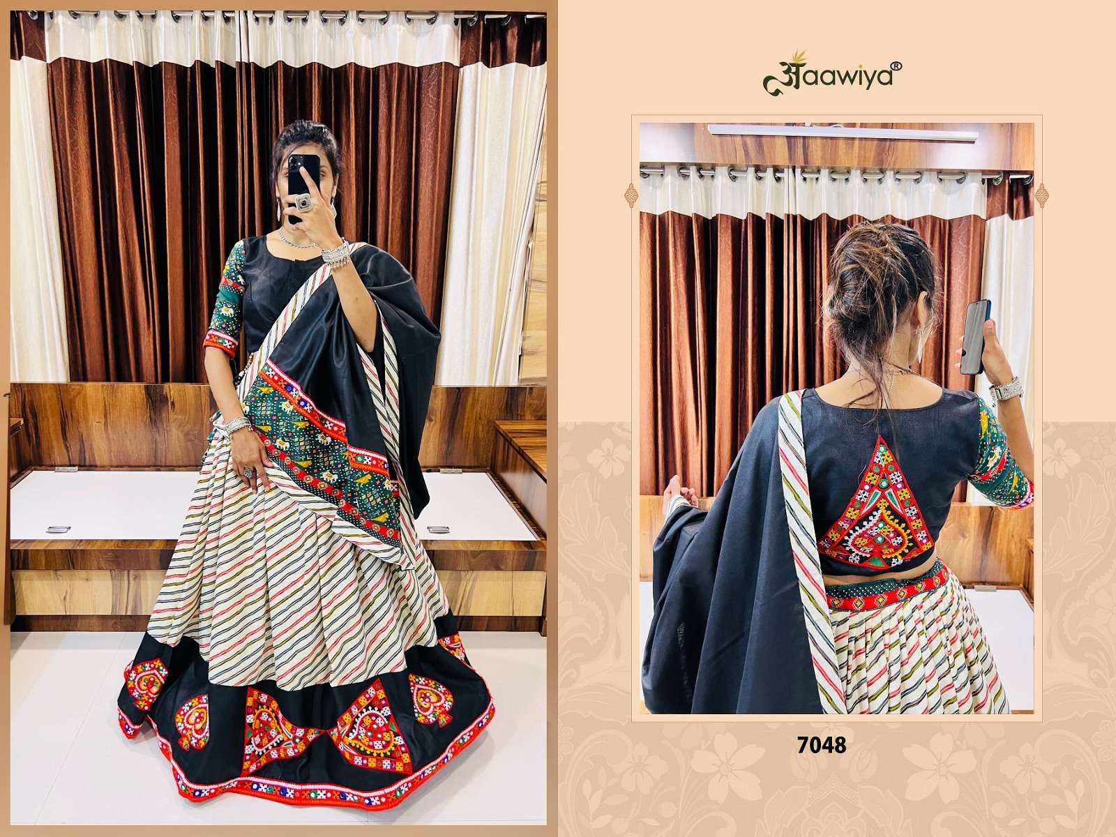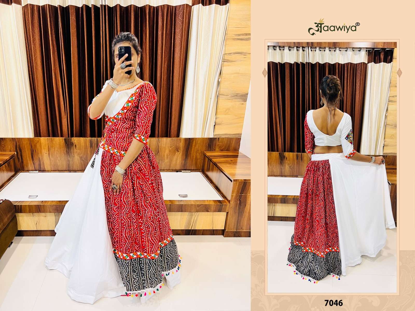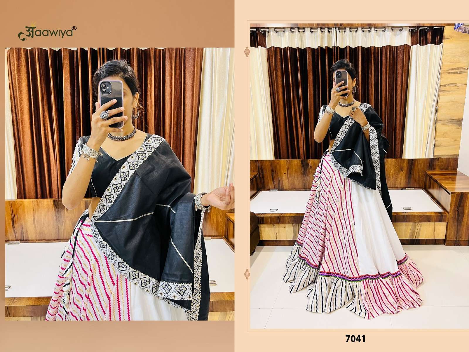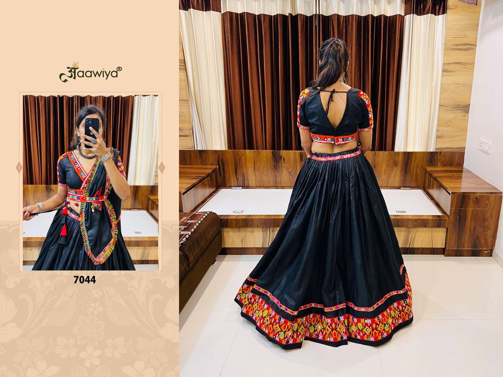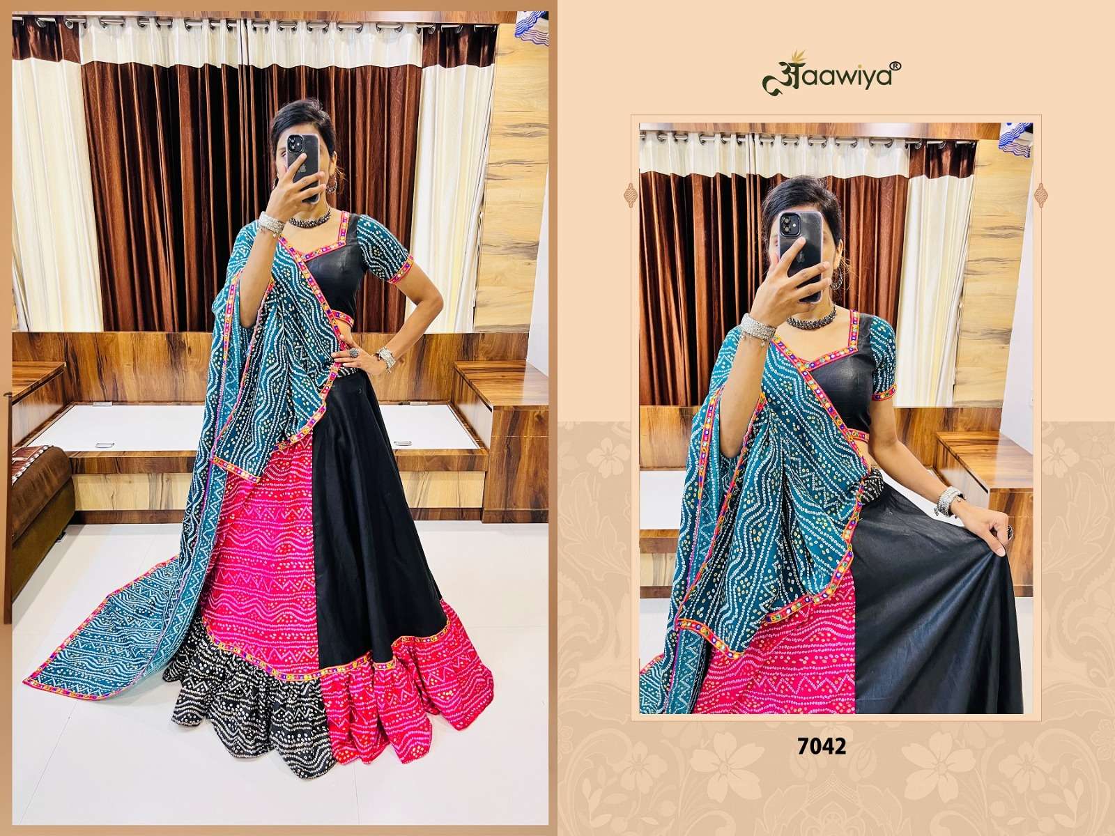 AAWIYA NAVRATRI SPECIAL TRADITIONAL CHANIYA CHOLI COLLECTION 2023 🥁🥢🥢 RAJWADI VOL -7 💐 ORIGINAL PRODUCT 💐 DESIGN NO. 7036 – 2350/- (5.5MTR FLAIR) GST EXTRA 12% LEHENGA: (STITCHED) BLOUSE: (STITCHED) DUPATTA PACKAGE CONTAIN: LEHENGA, BLOUSE, DUPATTA |
