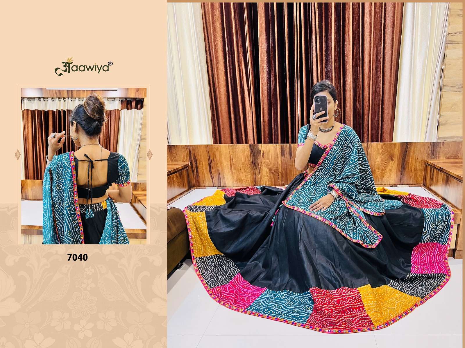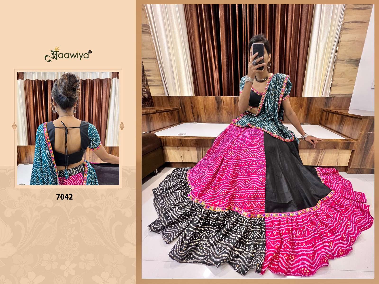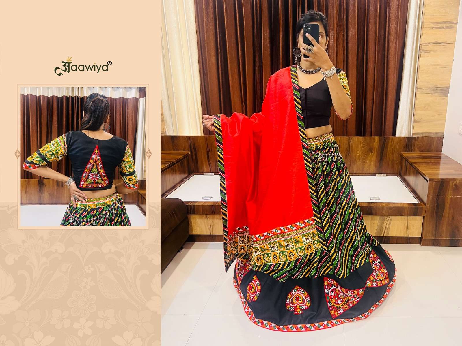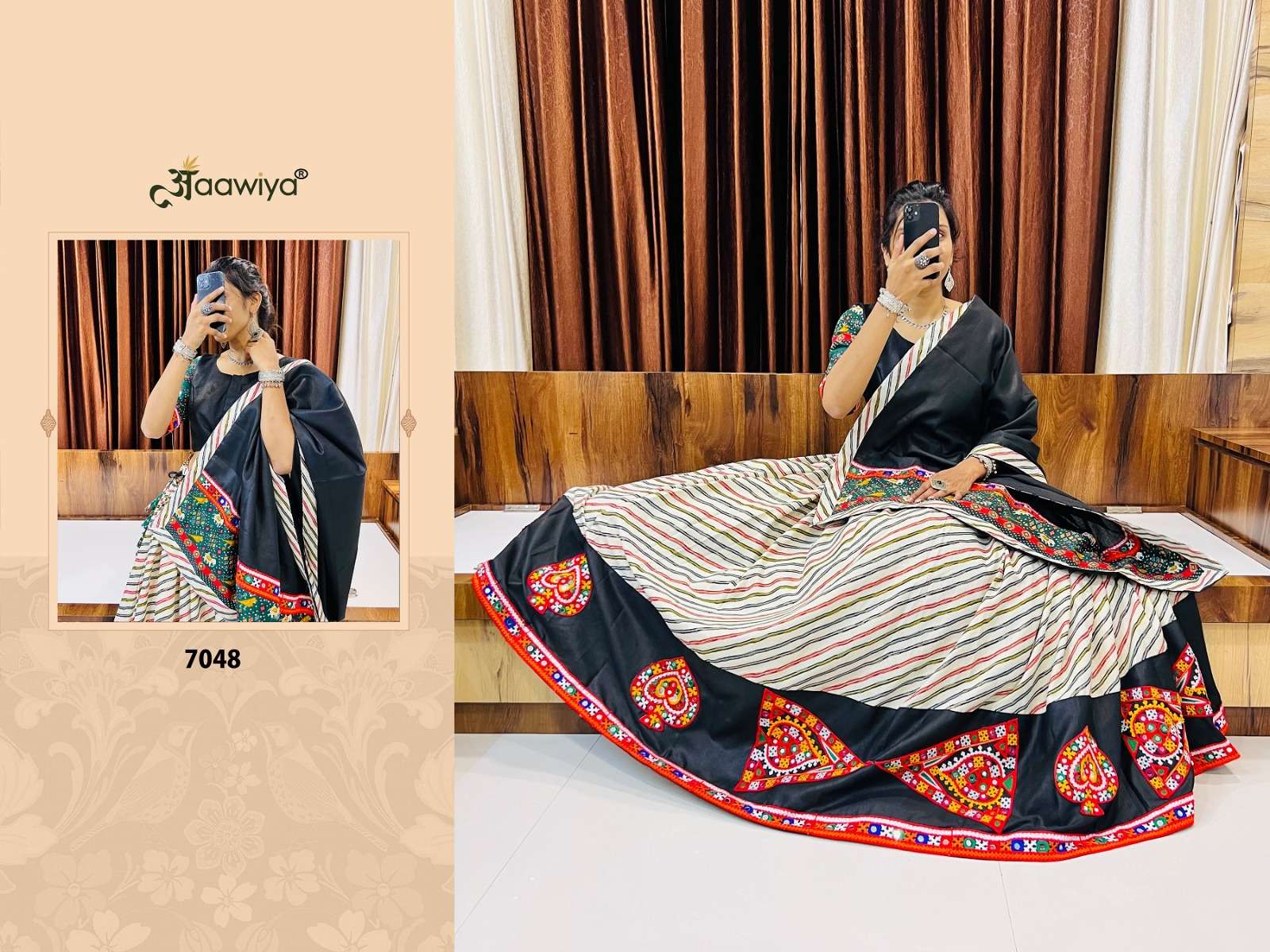 AAWIYA NAVRATRI SPECIAL TRADITIONAL CHANIYA CHOLI COLLECTION 2023 🥁🥢🥢 RAJWADI VOL -7 💐 ORIGINAL PRODUCT 💐 DESIGN NO. 7036 – 2350/- (5.5MTR FLAIR) GST EXTRA 12% LEHENGA: (STITCHED) BLOUSE: (STITCHED) DUPATTA PACKAGE CONTAIN: LEHENGA, BLOUSE, DUPATTA |