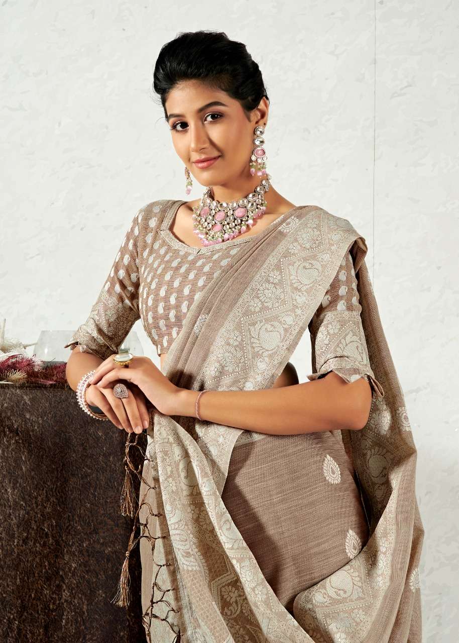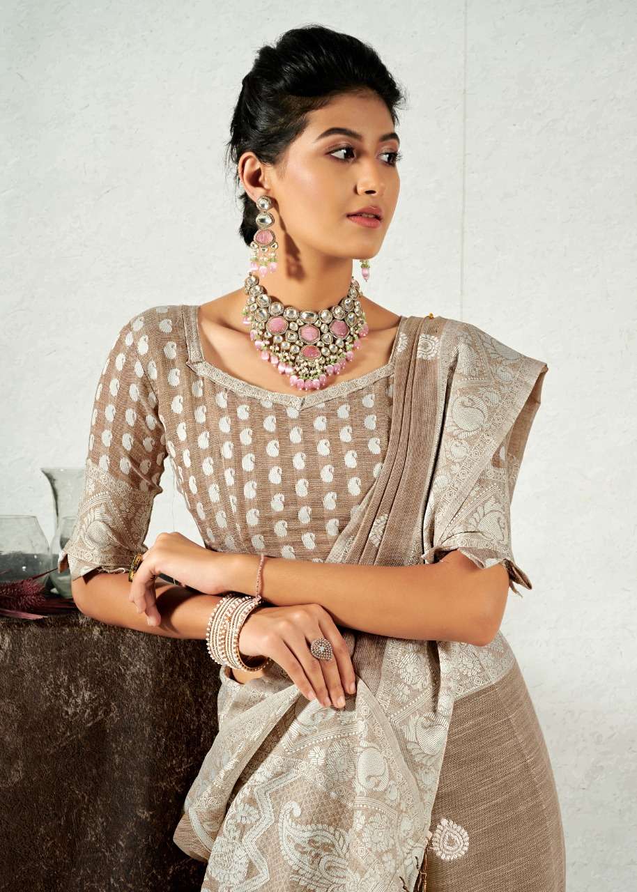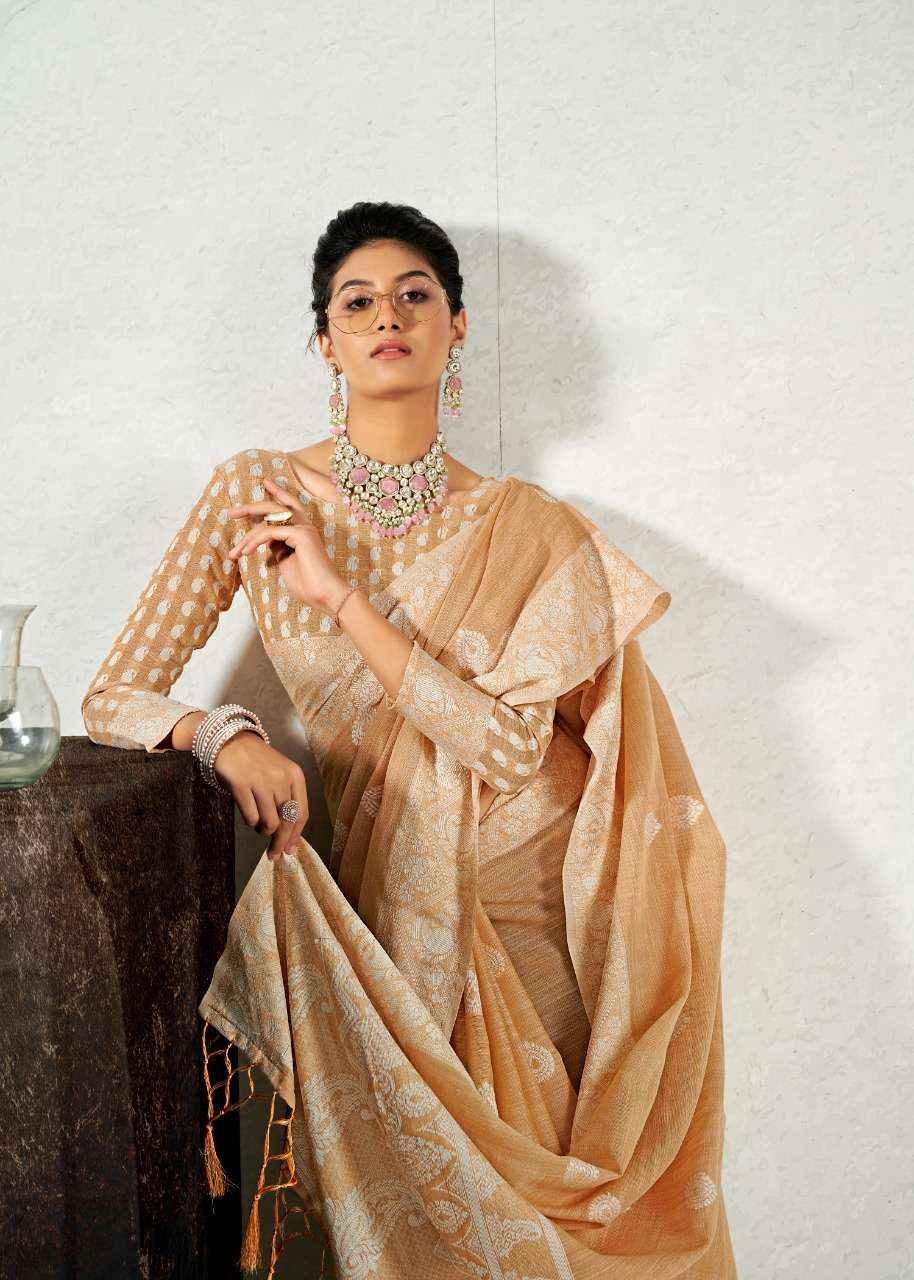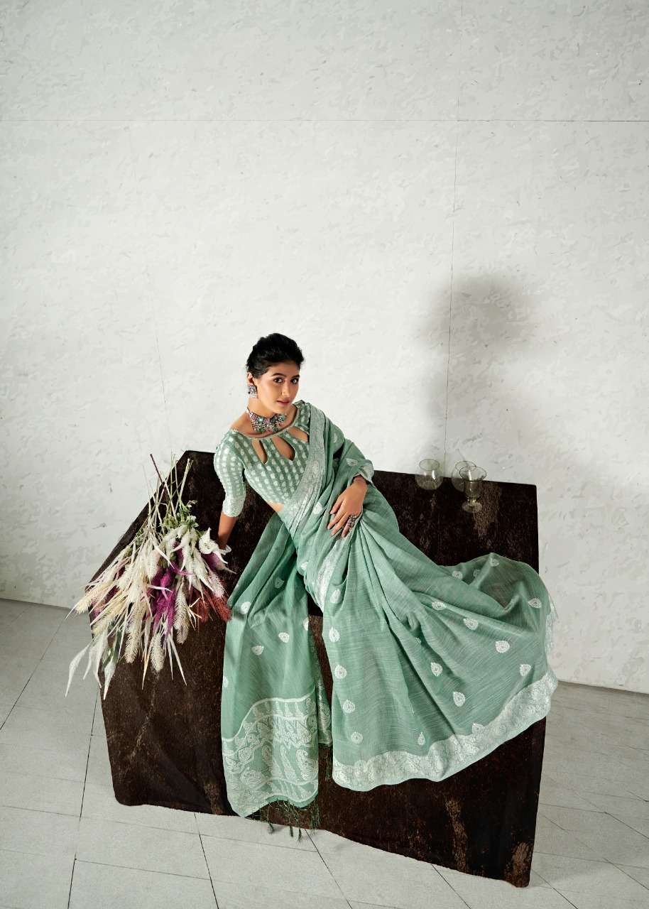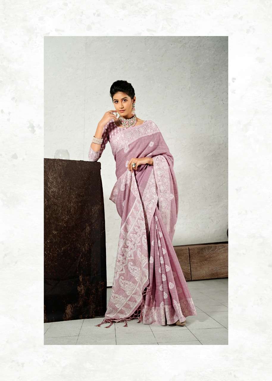 rajyog addis linen soft lucknowi weaving with butta fancy saris