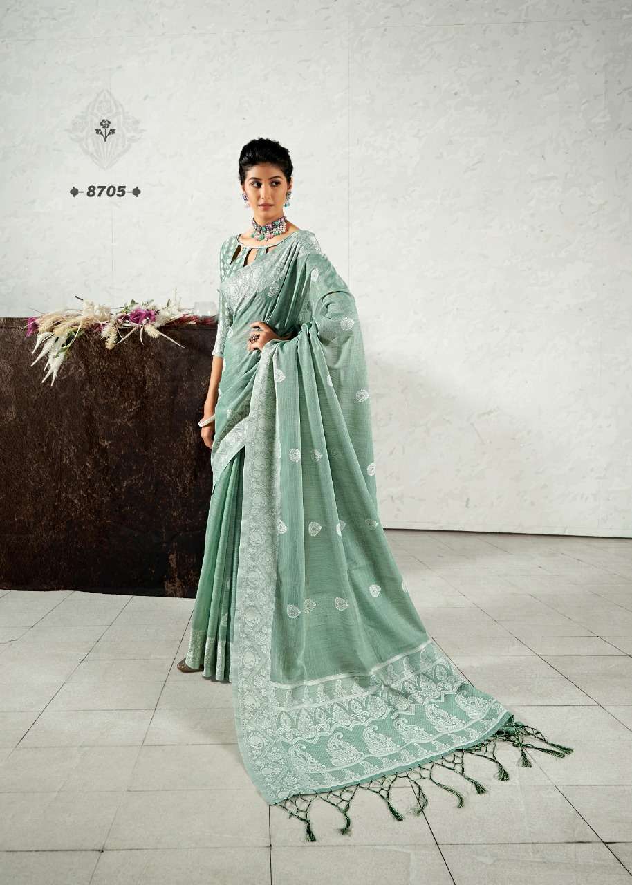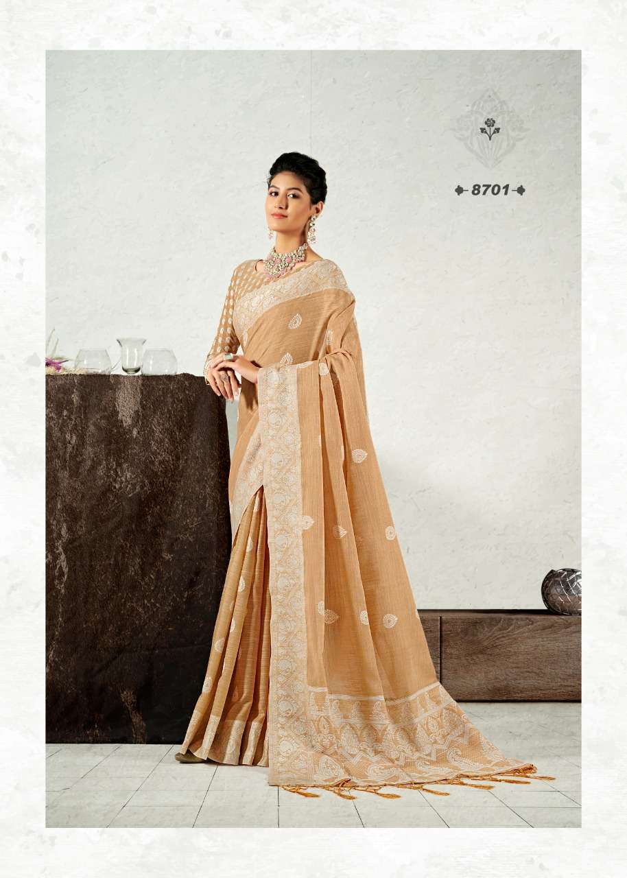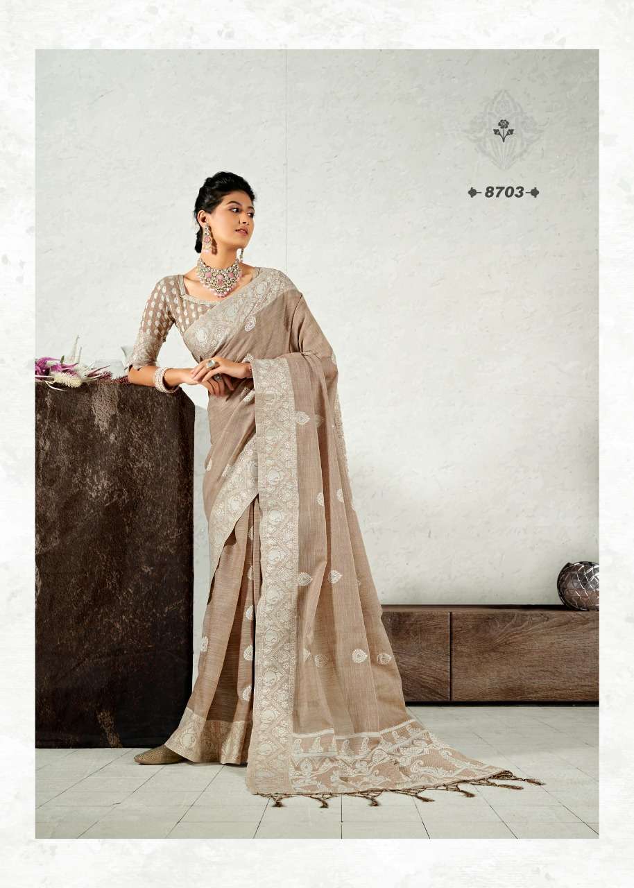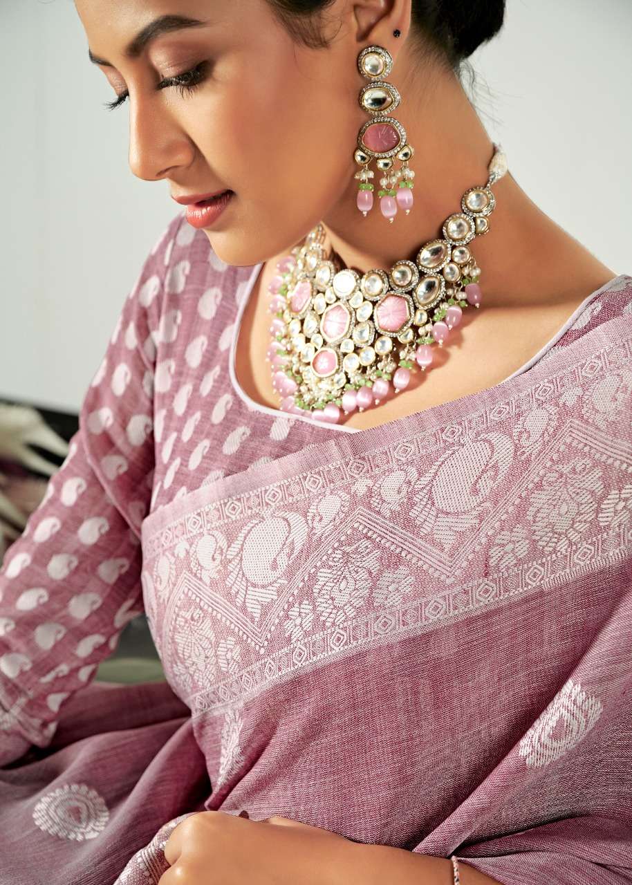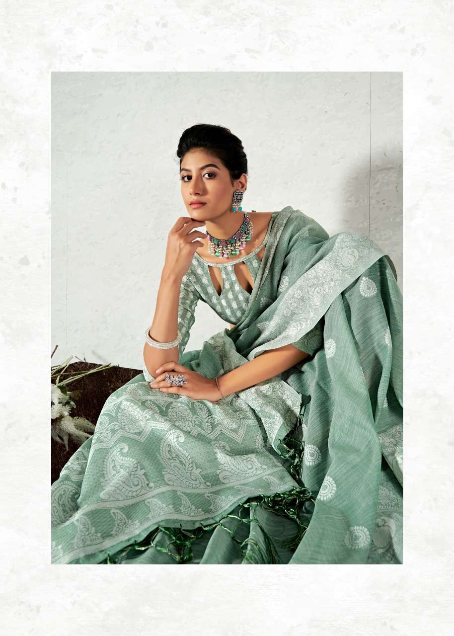 rajyog addis linen soft lucknowi weaving with butta fancy saris