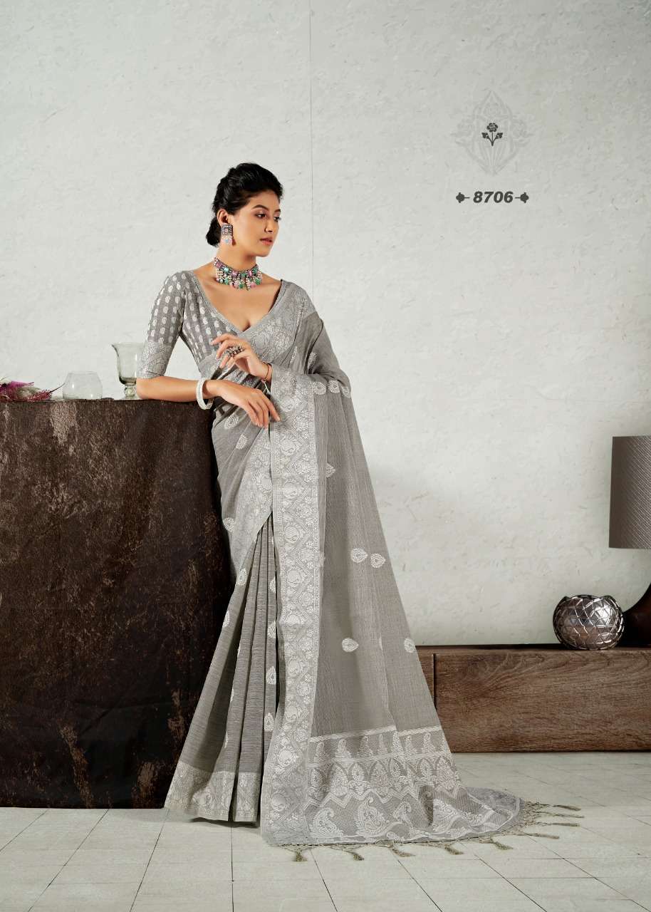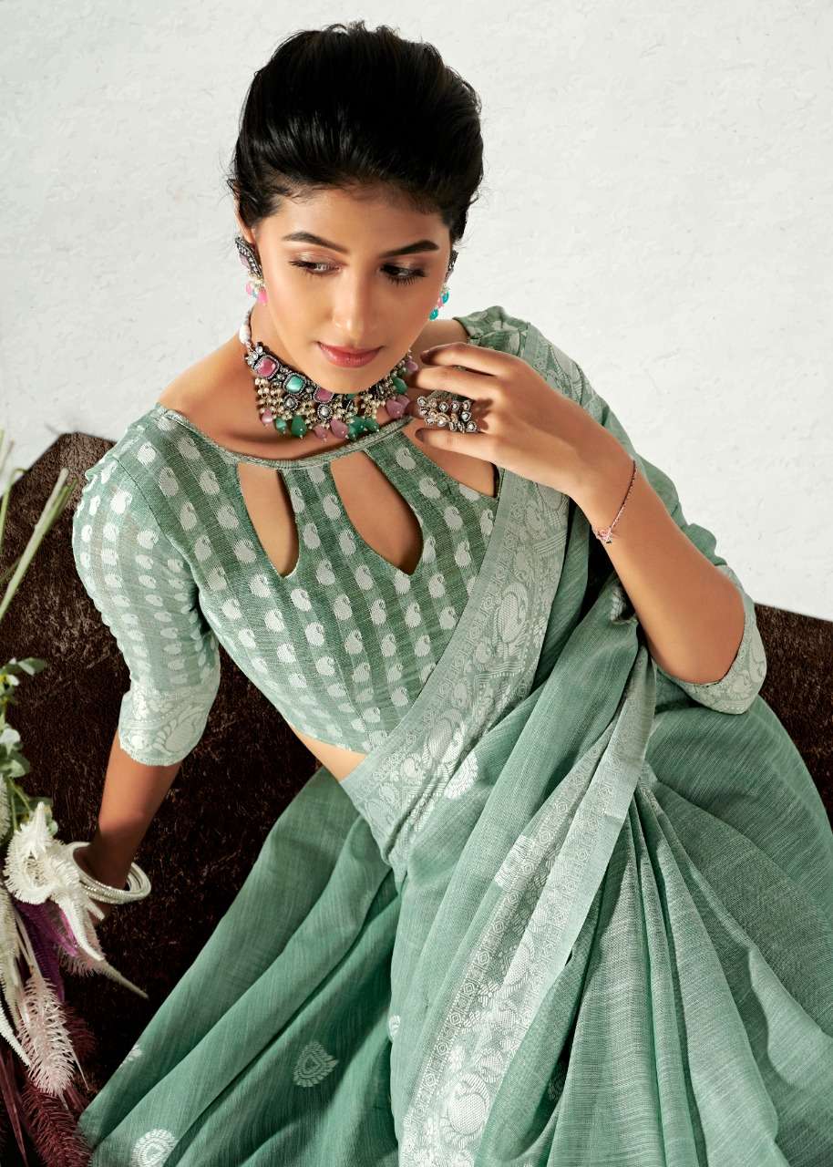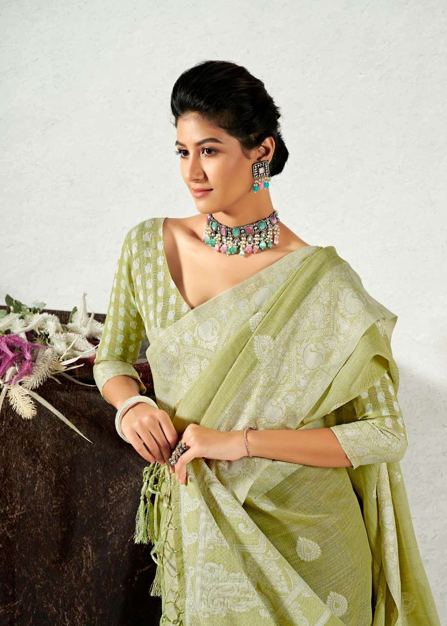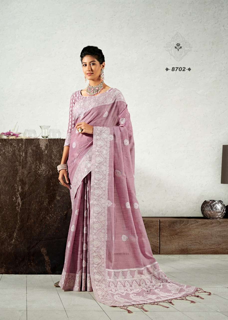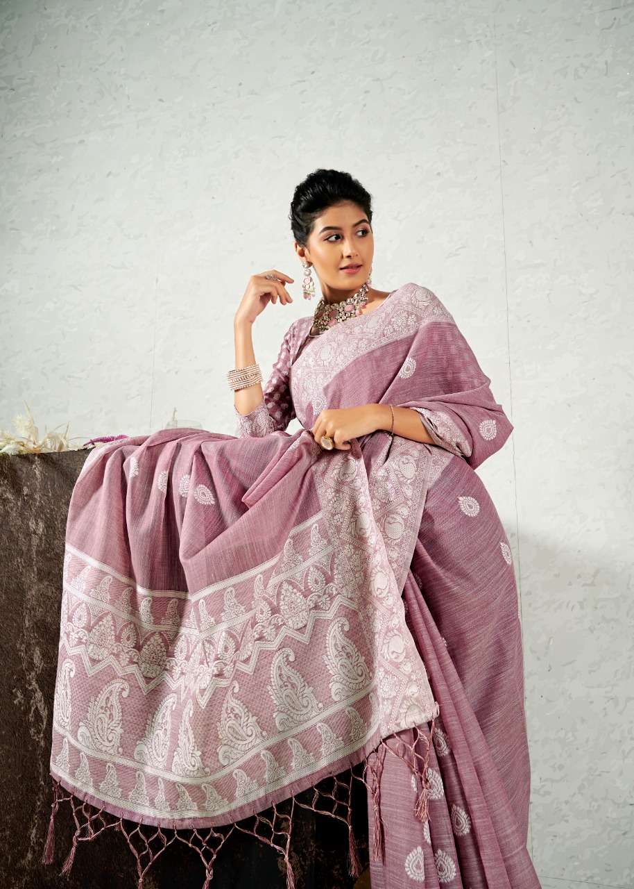 rajyog addis linen soft lucknowi weaving with butta fancy saris