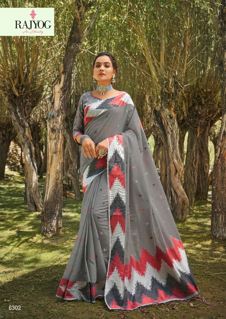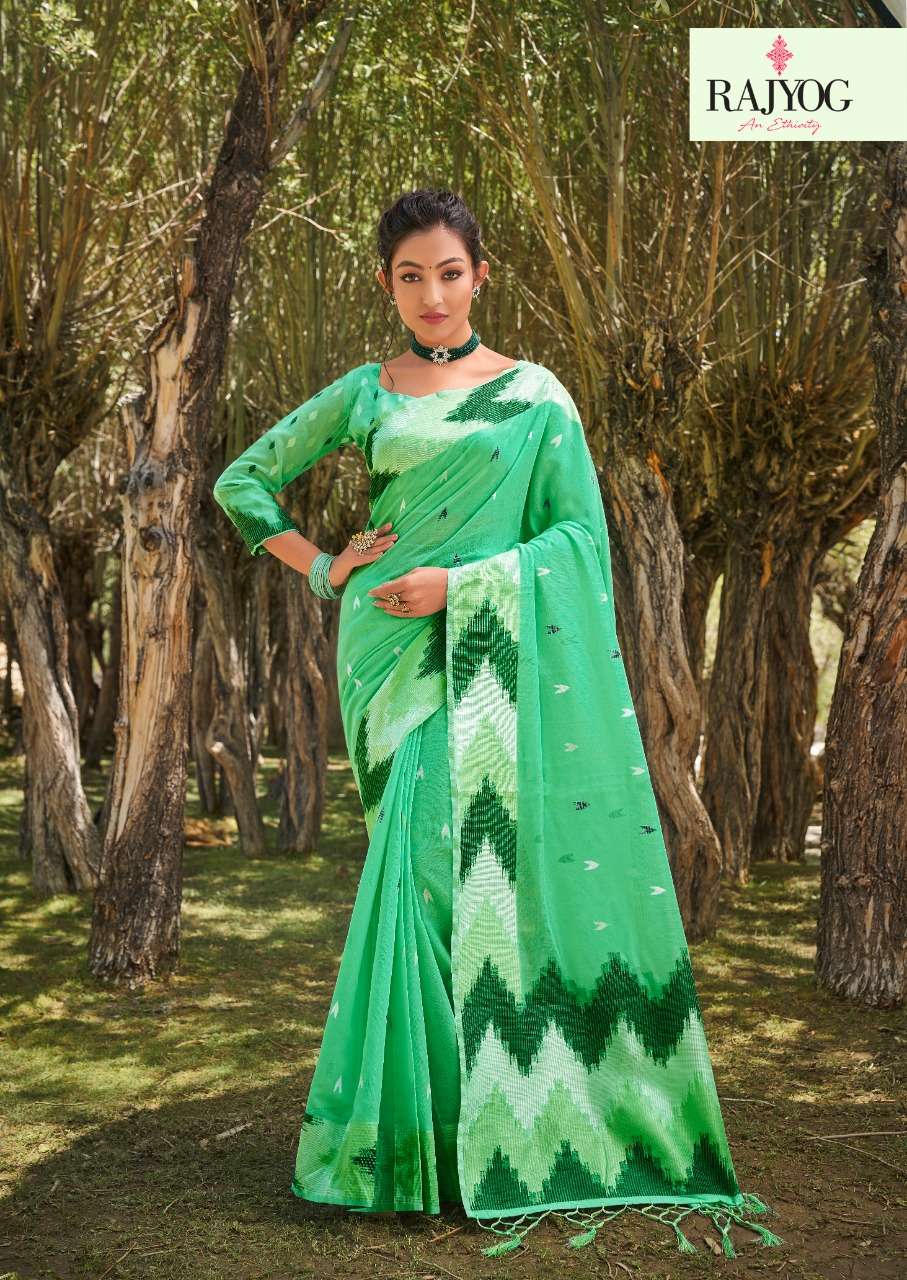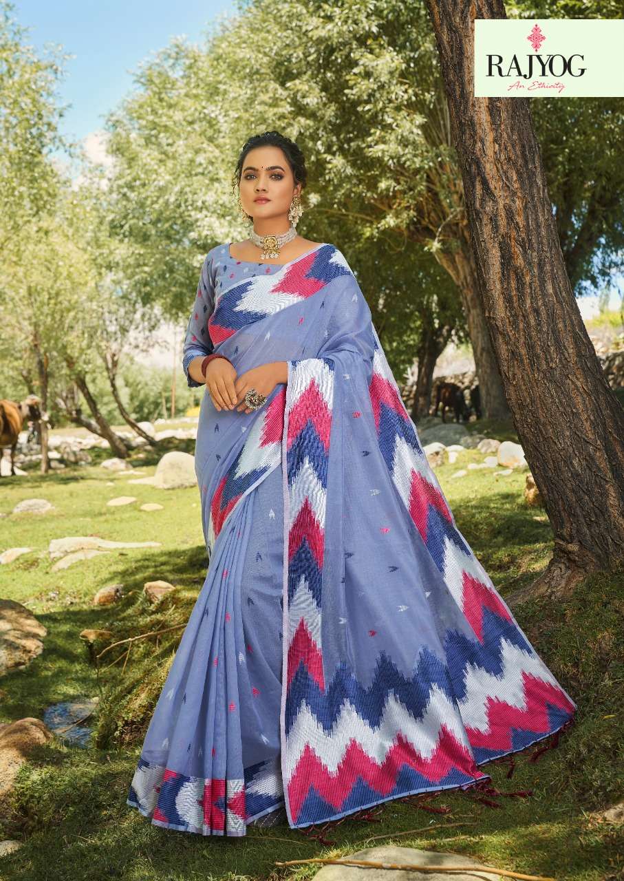 rajyog ashika silk soft cotton with designer lkkat pattern border and pallu