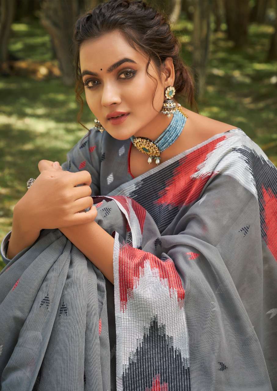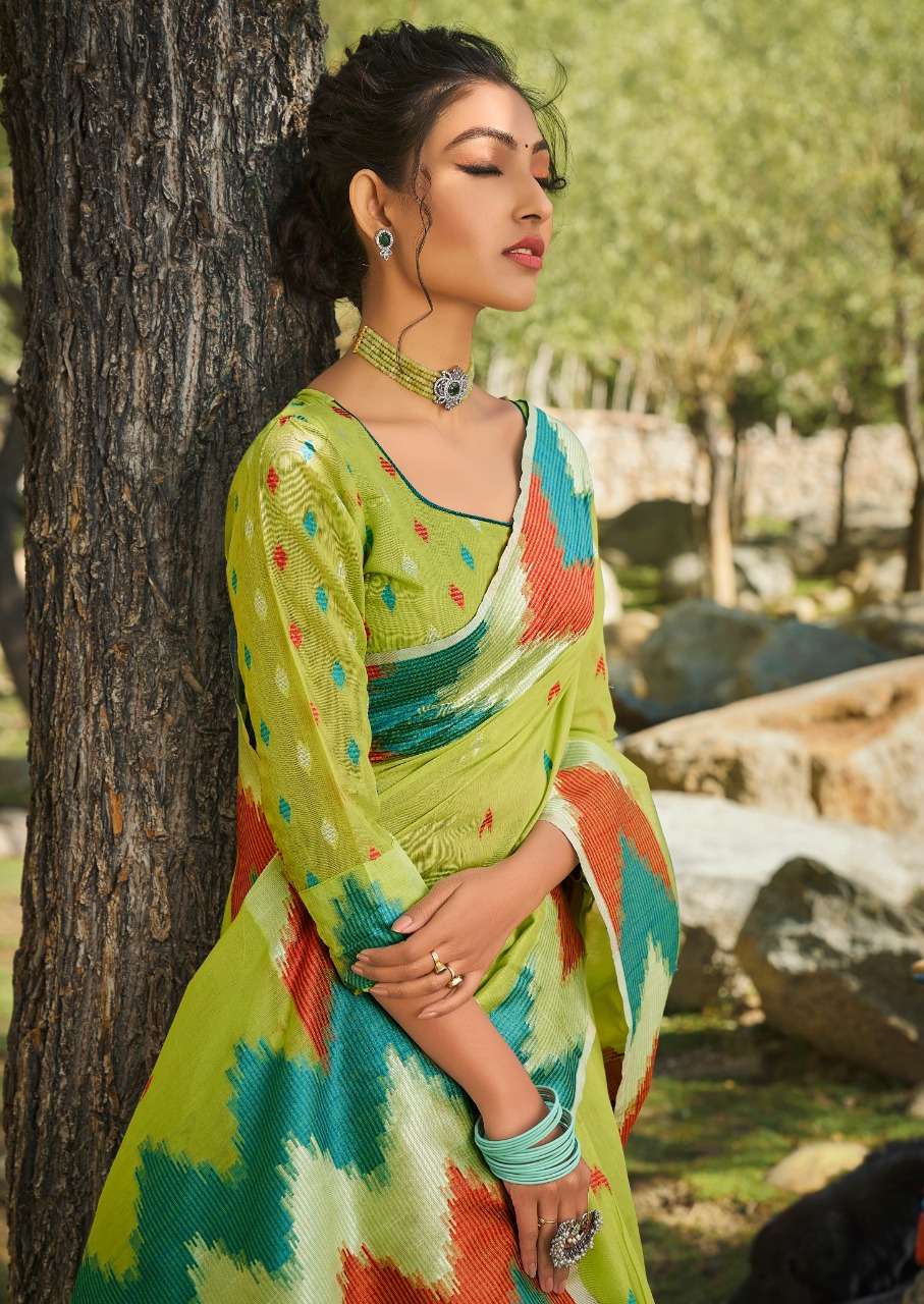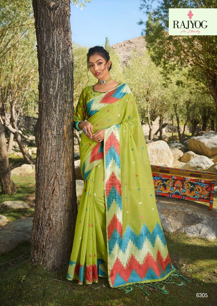 rajyog ashika silk soft cotton with designer lkkat pattern border and pallu