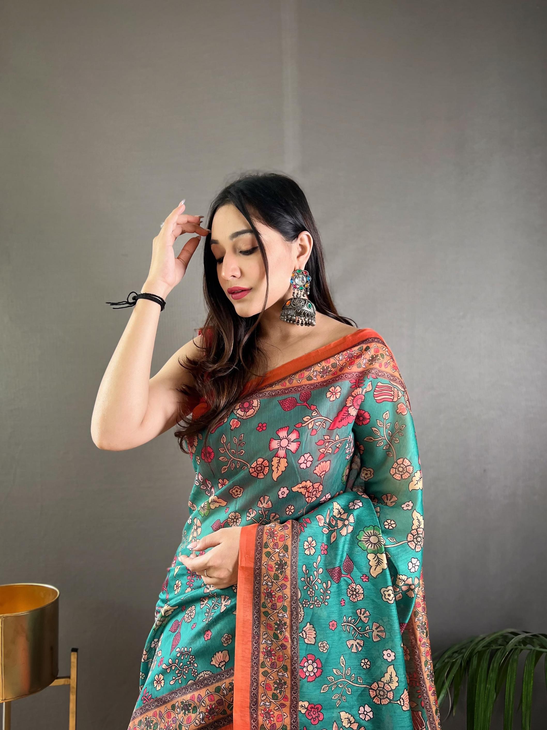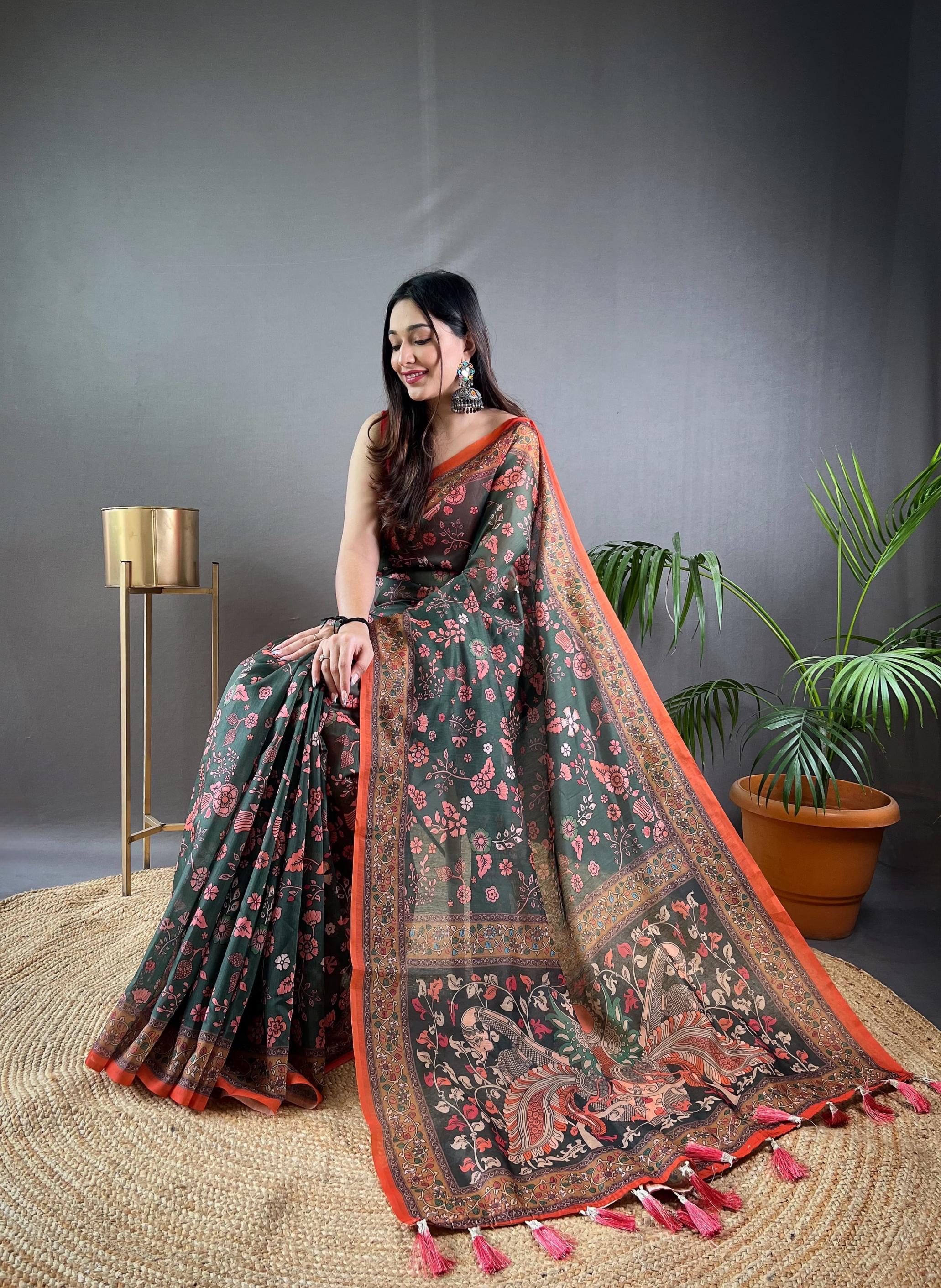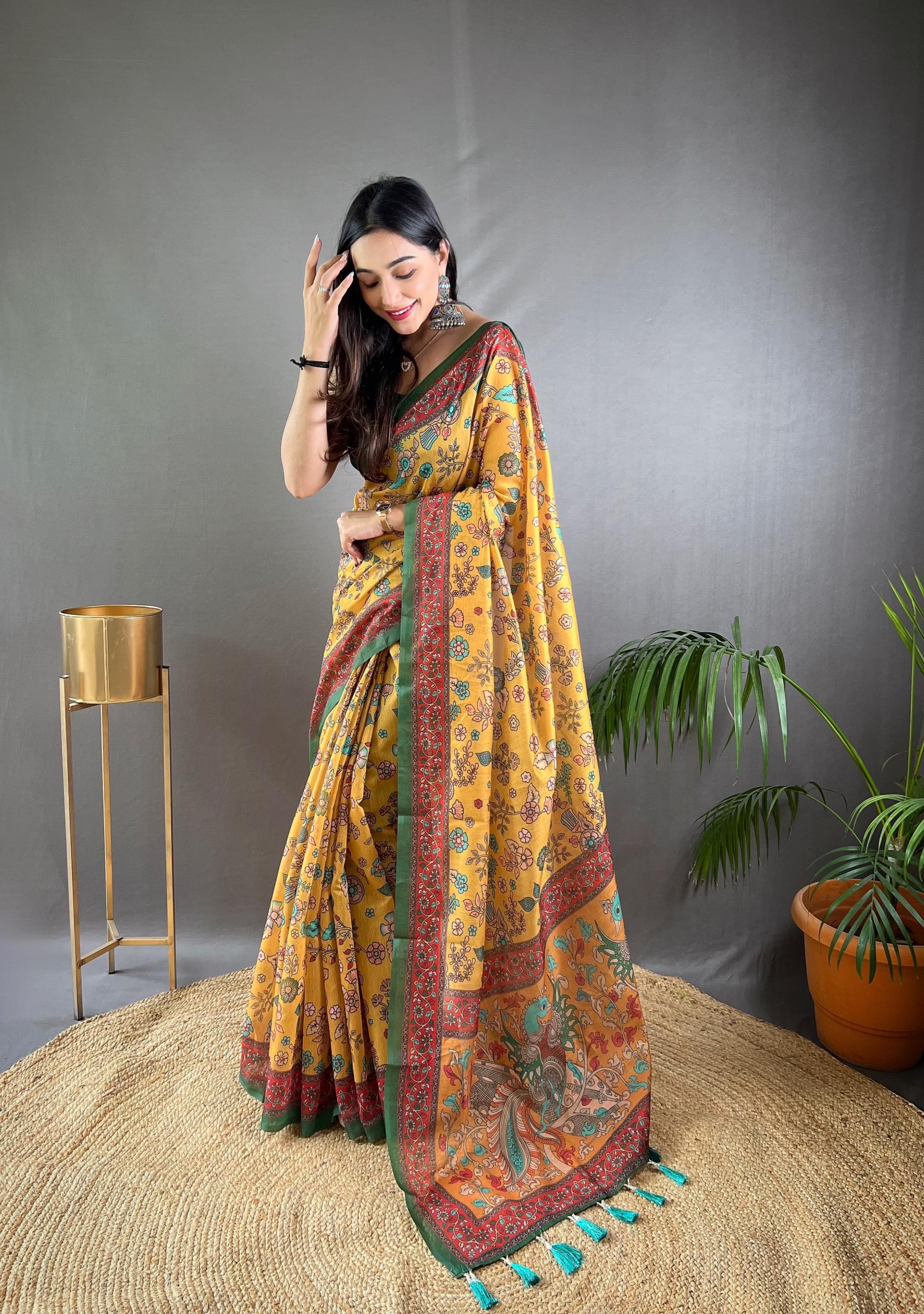 raksha malai cotton beautiful kalamkari prints saree exports