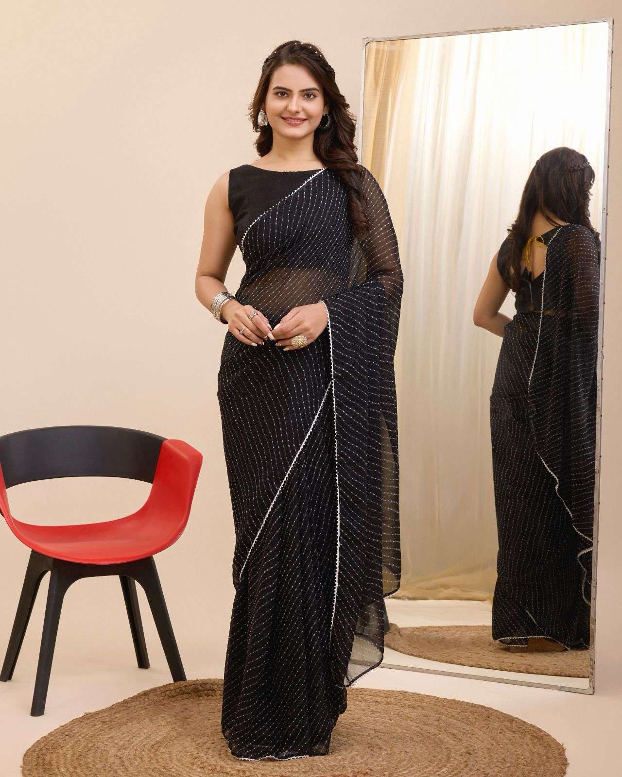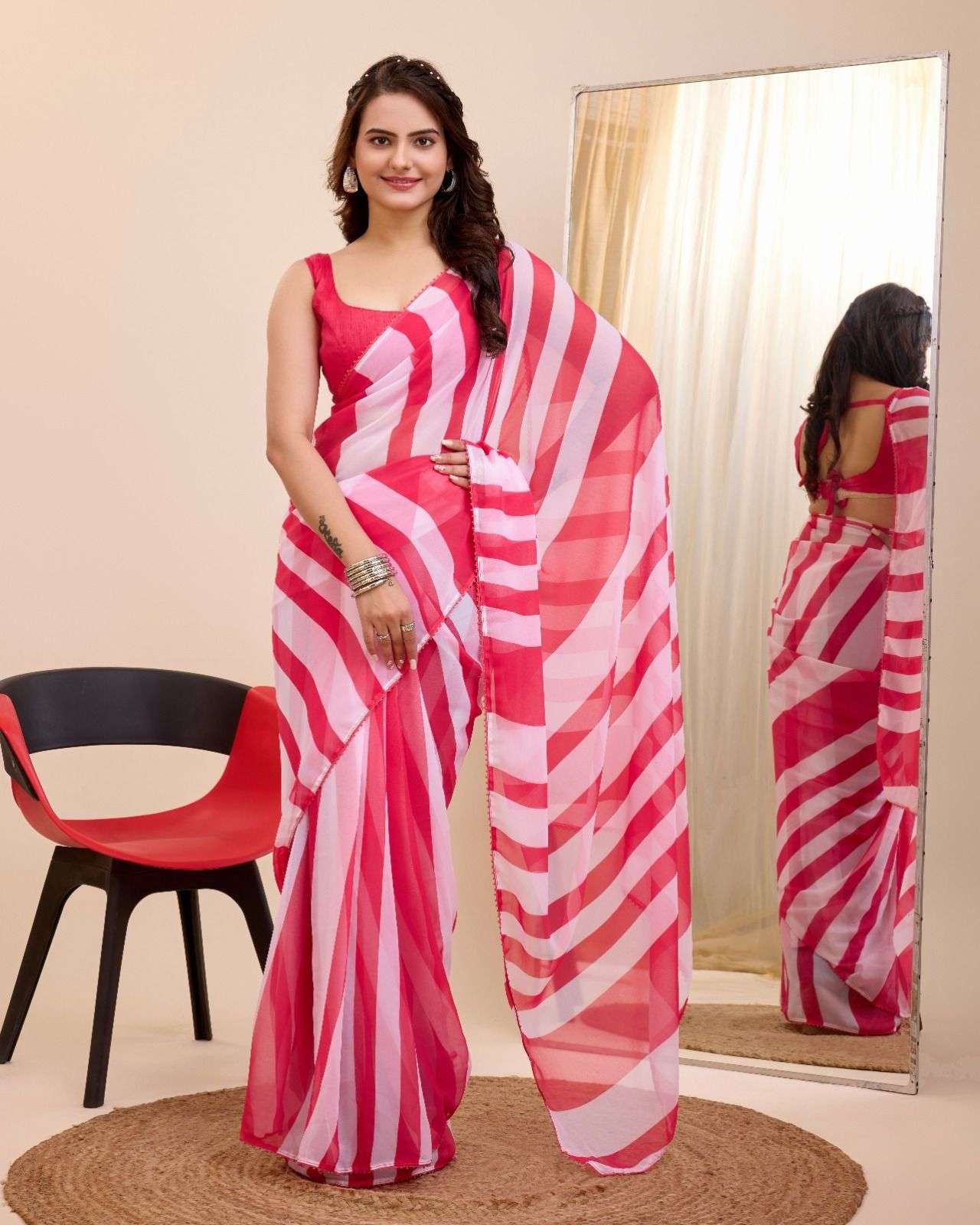 New Launch Rakul Ready to wear Sarees 🥻Saree Fabric - Georgette Saree is one minute ready to wear pre-stitched saree available with hook and drawstring. Sabse Sasta Sabse Achhaa |