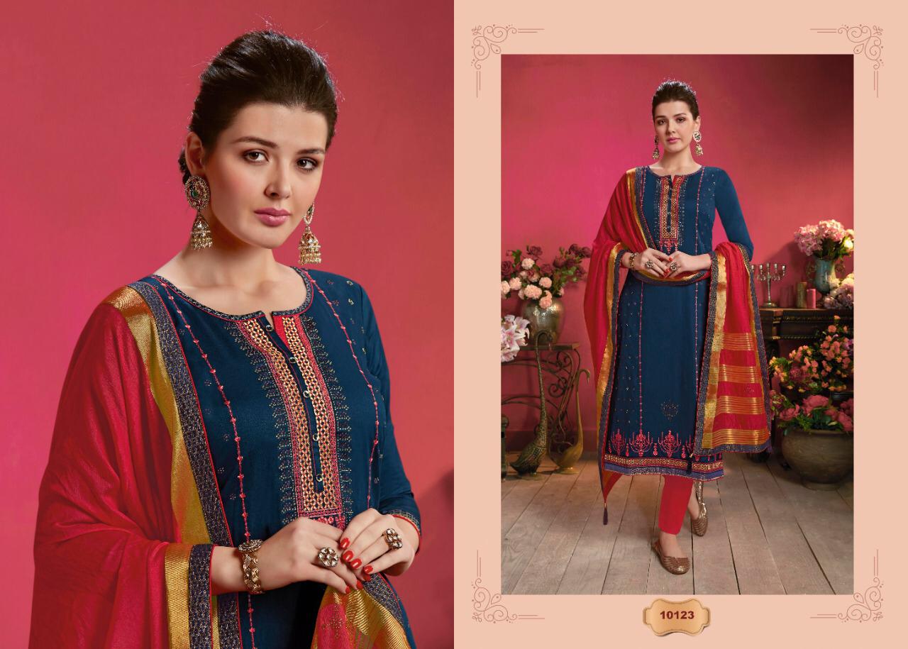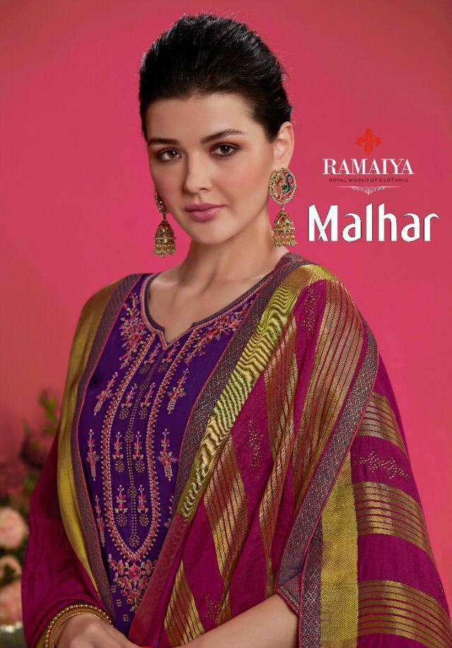 Ramaiya Malhar Jam Silk Embroidery Dress Materials Wholesaler
