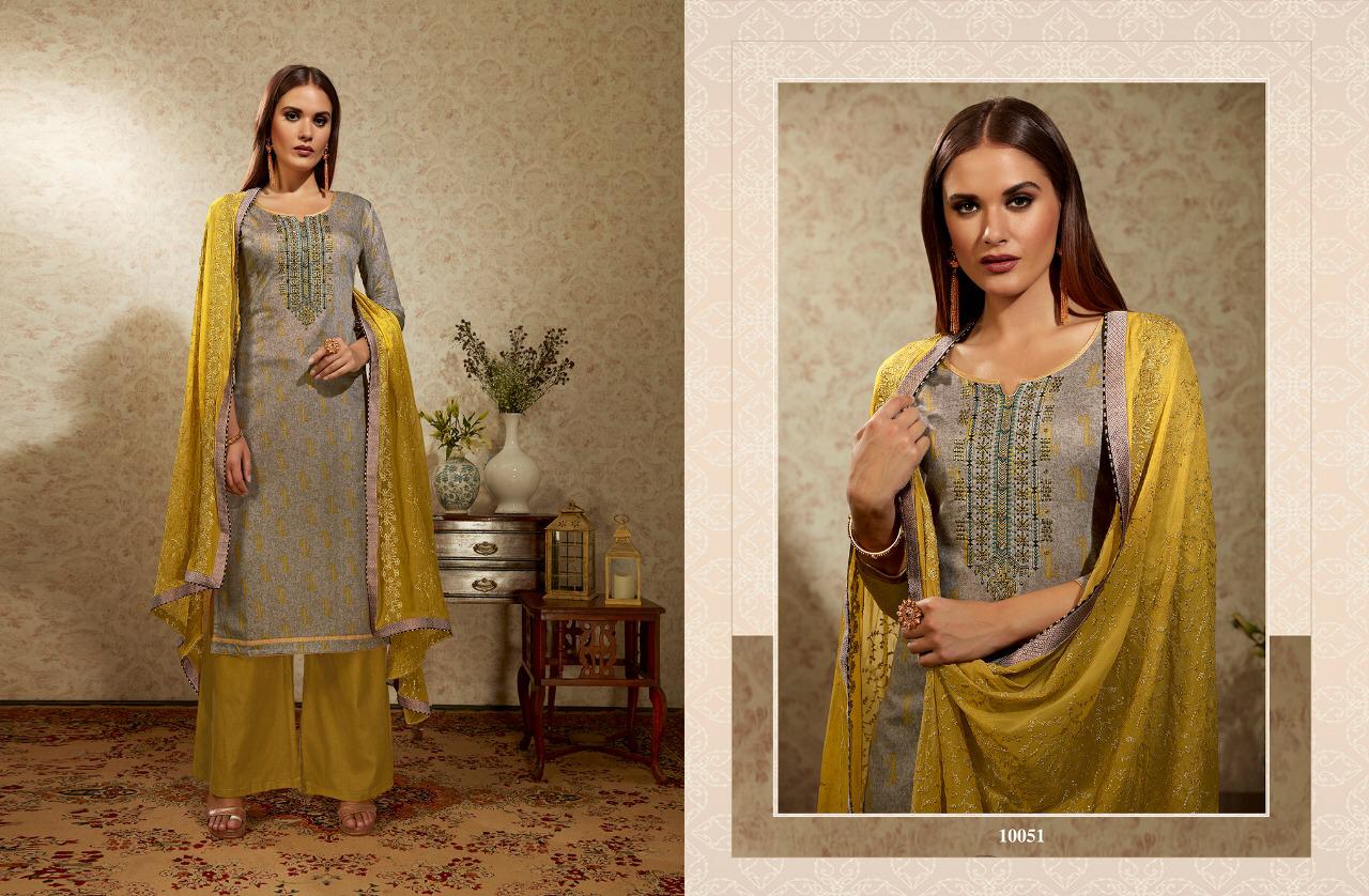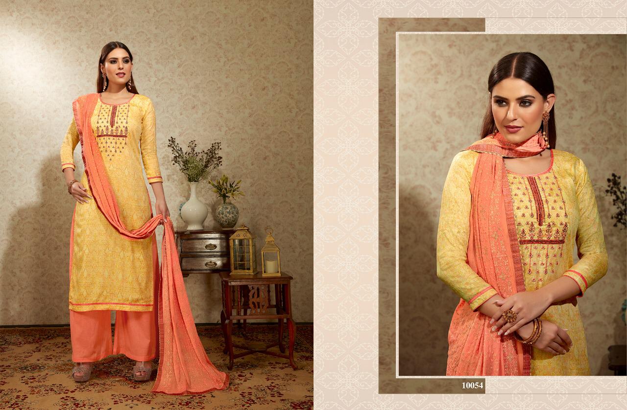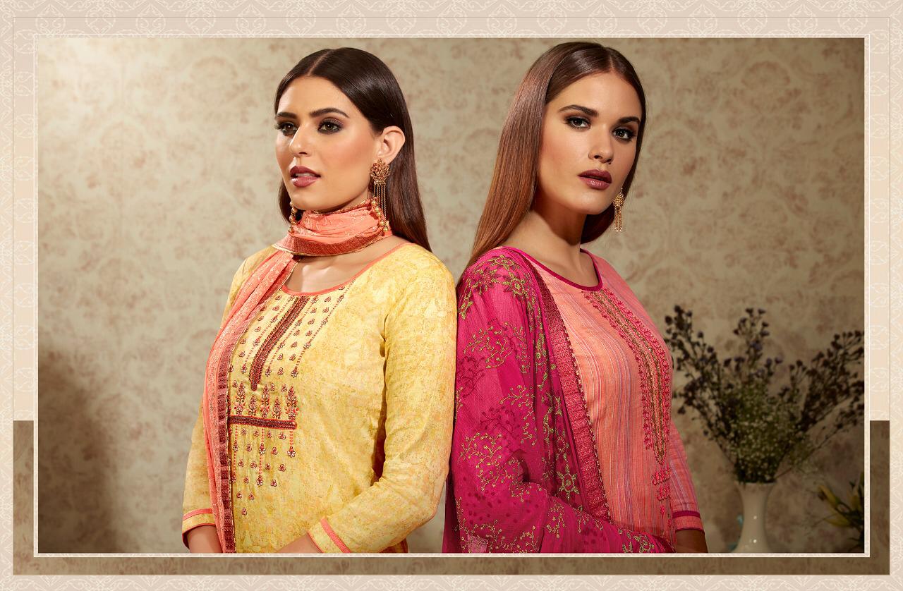 Ramaiya (Kessi Fabrics Pvt. Ltd.) has launched Catalog name : Alfaaz Fabric Details ▪Top:- COTTON SATIN EMBROIDERY WORK WITH KHATLI WORK NECK ▪Bottom:- COTTON ▪Dupatta:- NAZNIN BADLA JARI WORK ▪Total Design:- 8 Rate. 749/- Booking started from now... Order yours soon... |