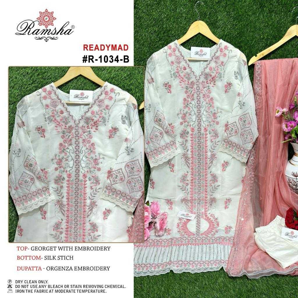 ramsha 1034 nx pakistani designer embroidery kurti bottom dupatta readymade collection
