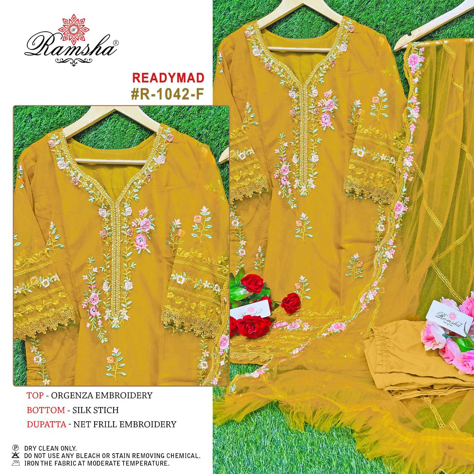 ramsha 1042 pakistani designer organza embroidery readymade kurti pant dupatta