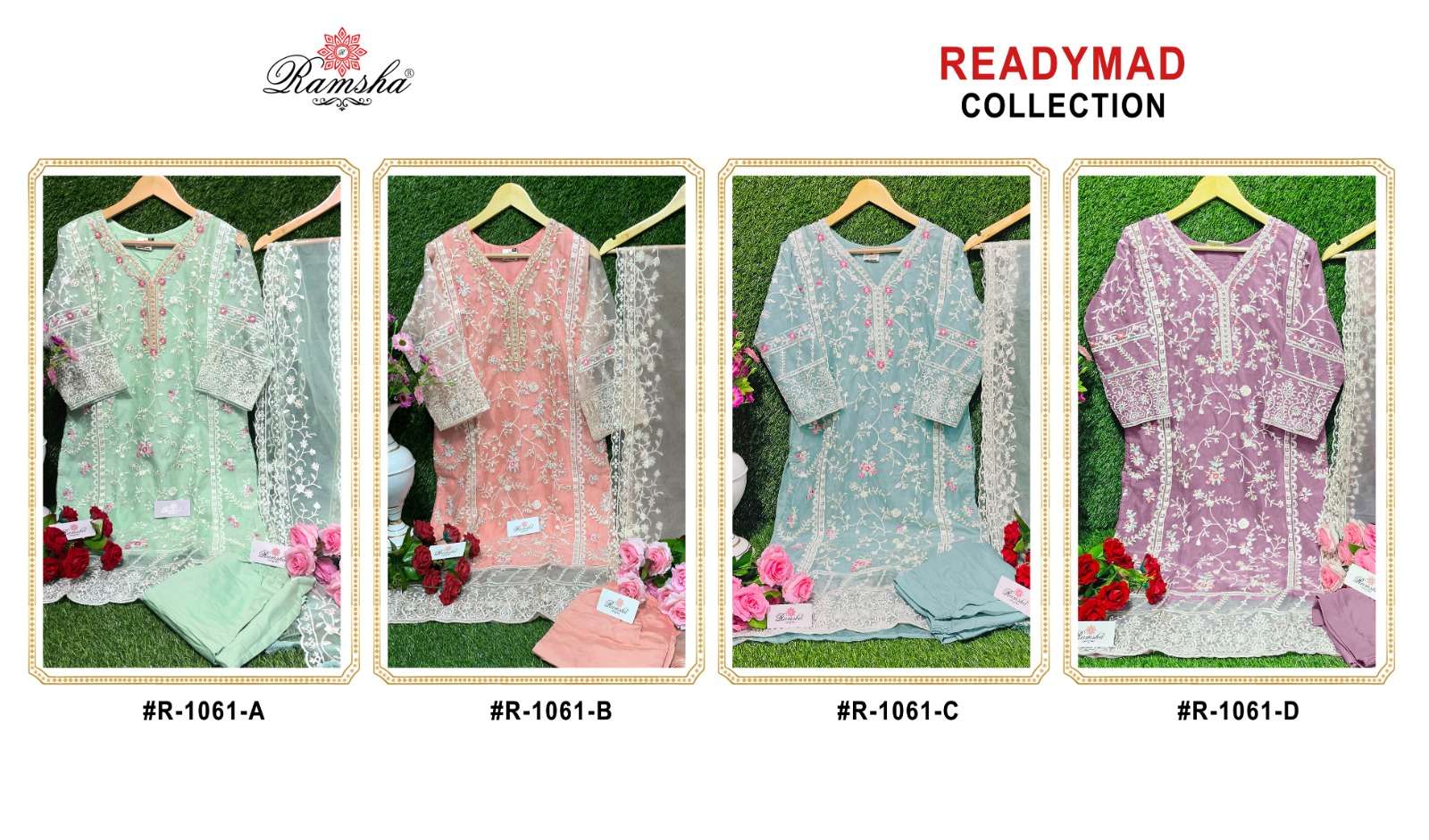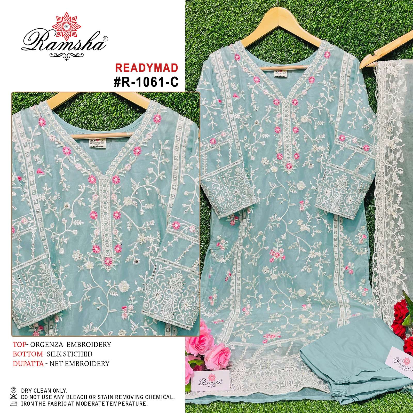 ramsha 1061 organza embroidered work readymade pakistani salwar kameez
