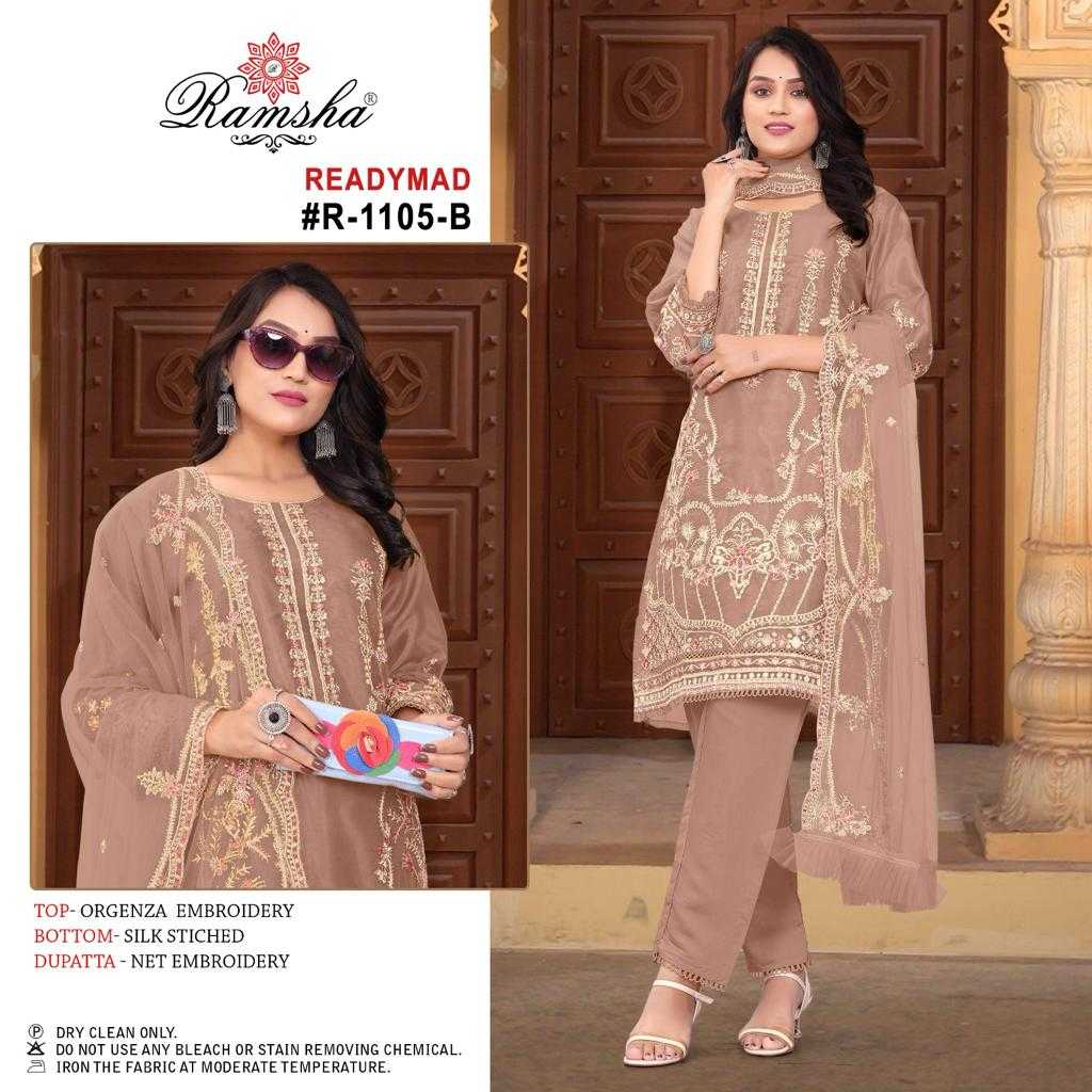 ramsha 1105 pakistani designer embroidery kurti bottom dupatta readymade collection