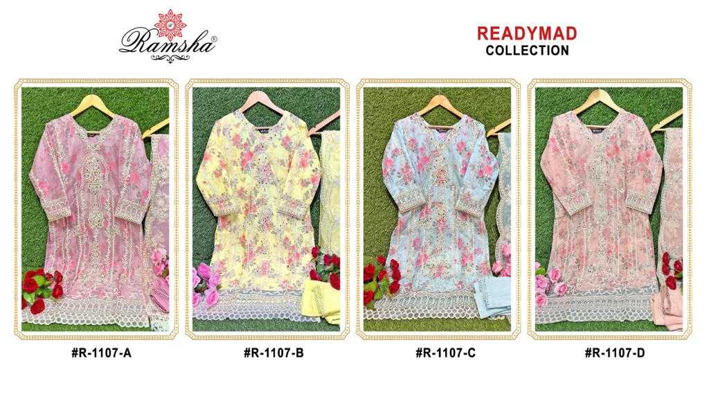 ramsha 1107 pakistani fullstitch organza embroidery kurti pant dupatta