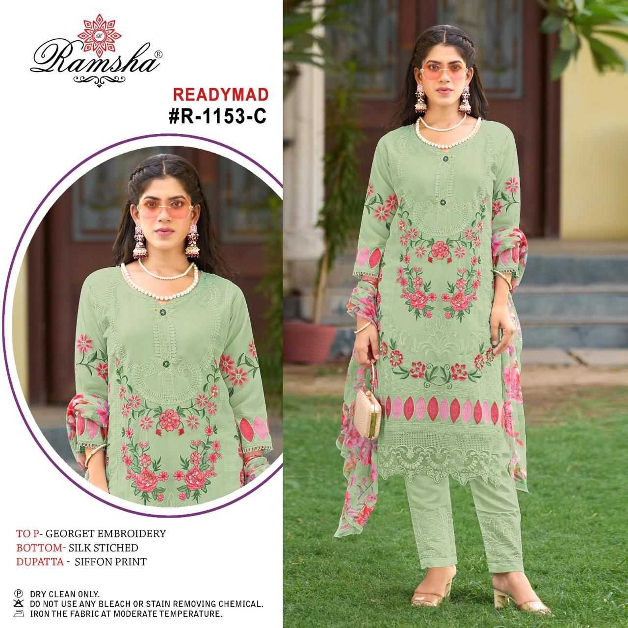 ramsha 1153 nx embroidery readymade georgette 3pcs suits