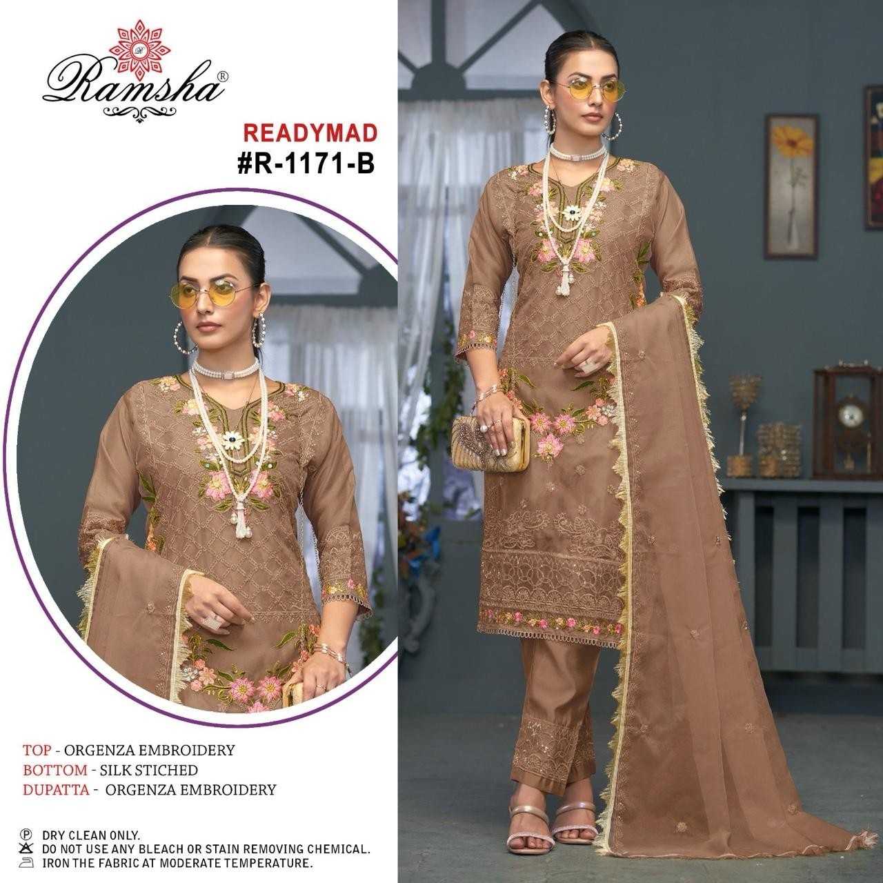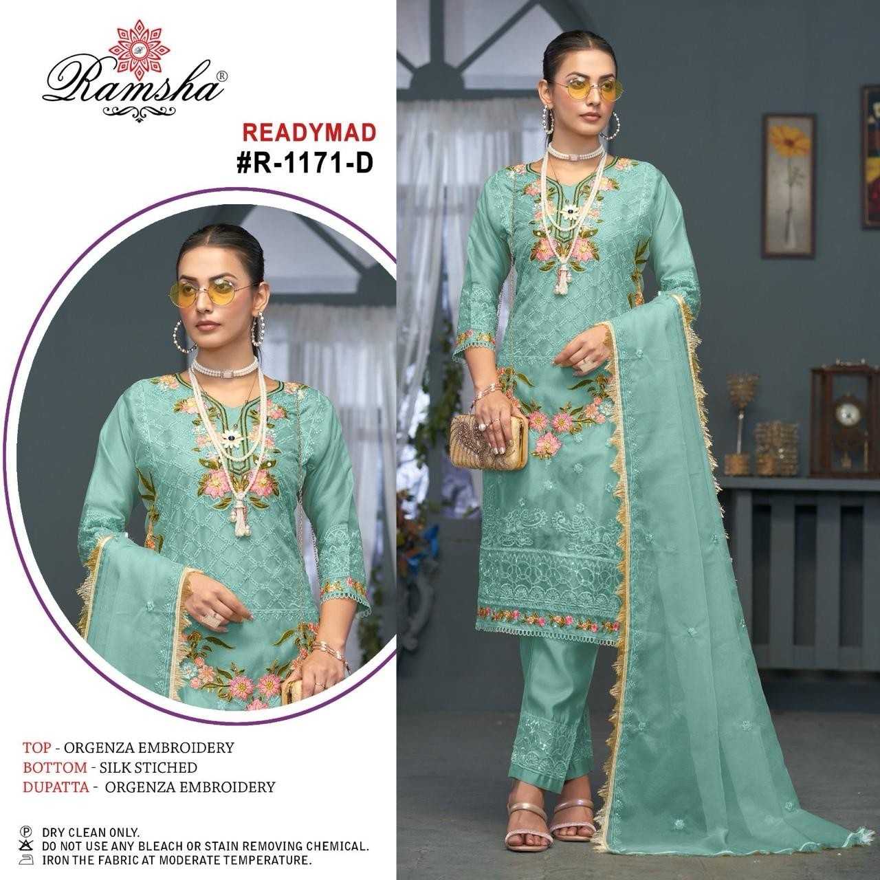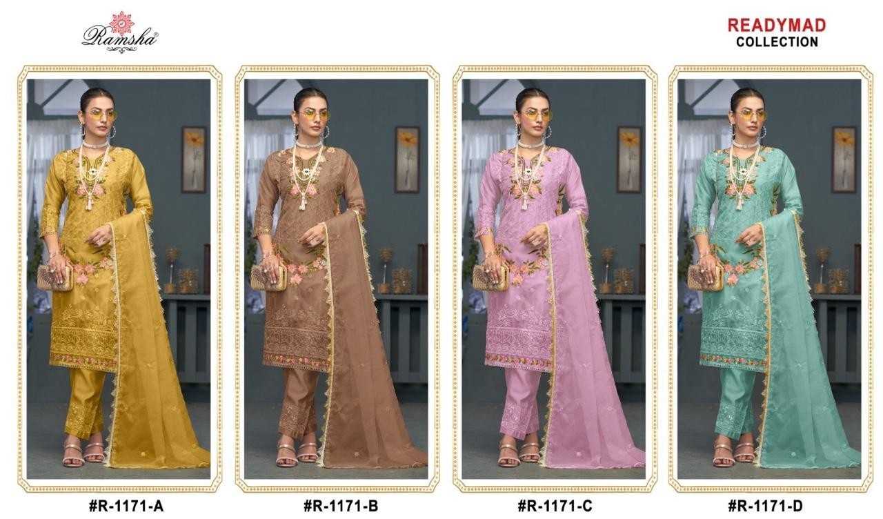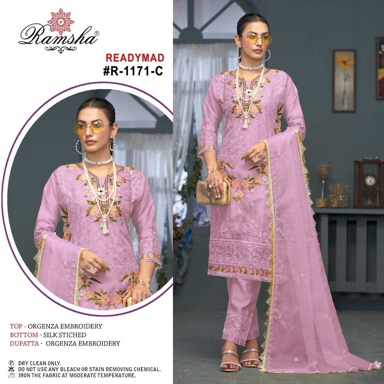 ramsha 1171 organza solid design full stitch pakistani 3pcs dress