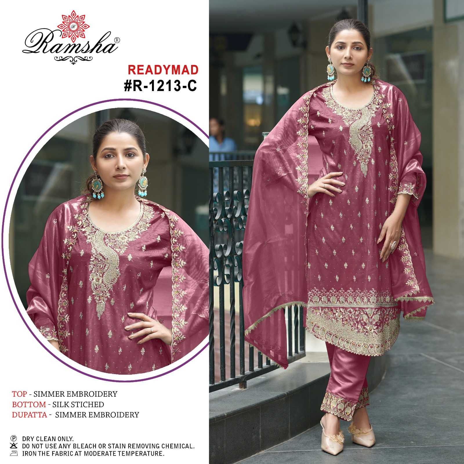 ramsha 1213 nx simmer embroidery work readymade 3pcs dress