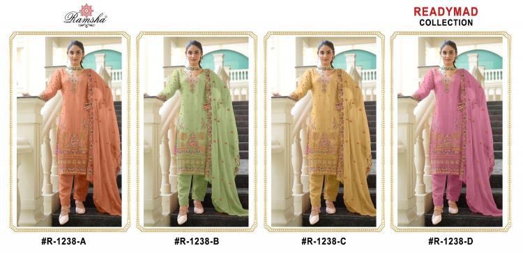 ramsha 1238 nx organza chiffon unique colours full stitch pakistani dress