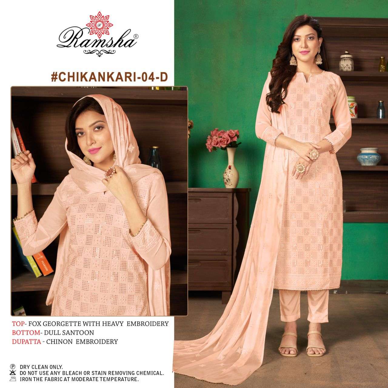 RAMSHA..PRESENT 🌻CHIKANKARI-04 nx 🌻 RATE - 1251₹+GST FABRICS DETAIL:- DELIVERY:- Today |