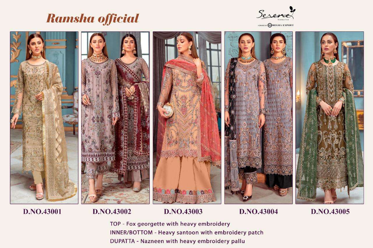 —SERENE PRESENTING NEW DESIGN—😍😍 We are launching today pakistani semi stitched suits heavy embroidery concepts stylish look and beautiful designs. 💐Ramsha Official💐 Fabric Details: 👇🏻👇🏻👇🏻👇🏻👇🏻👇🏻👇🏻👇🏻👇🏻👇🏻👇🏻 👚Top : Fox georgette heavy embroidered 👖Bottom + Inner - Heavy Santoon with emb patch *🎽Dupatta : Nazneen heavy embroidered * 📦 5 piece in set📦 _💰Price : 1299₹ + GST💰_set to set *Delivery Tomorrow 22th April, Friday* 🚢, |