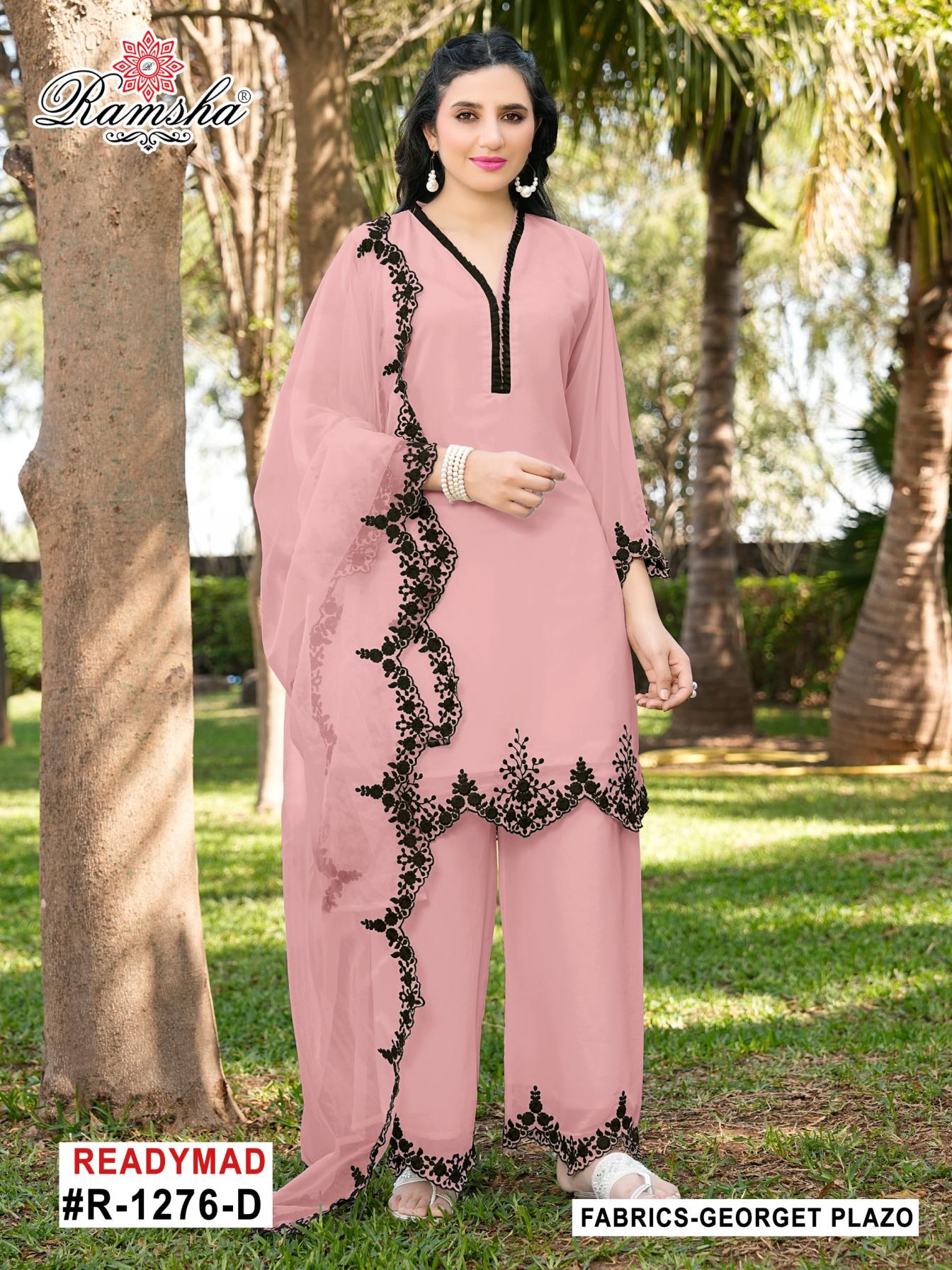 ramsha present r 1276 georgette pakistani kurti pant and dupatta set