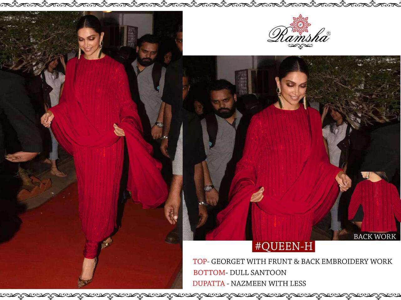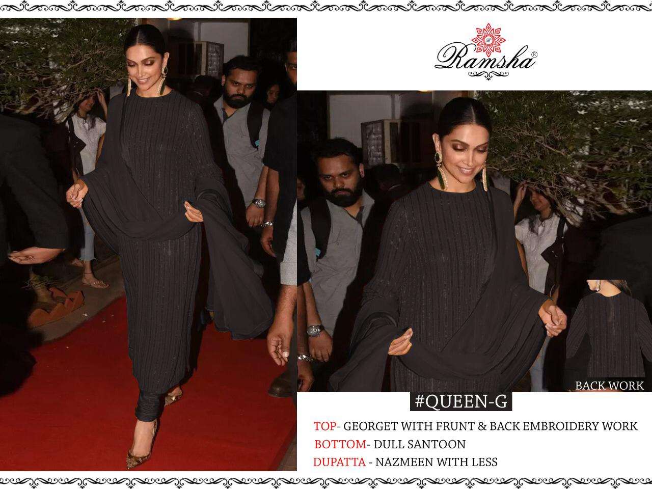 RAMSHA..PRESENT 🌻QUEEN DARK 🌻 RATE : - 1000₹+GST FABRICS DETAIL:- |