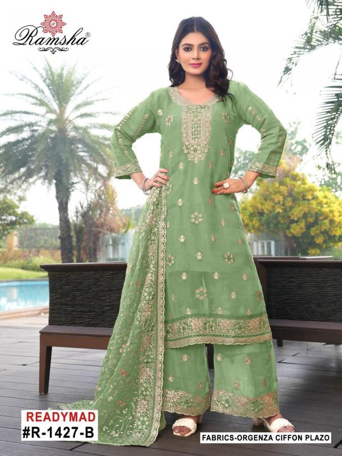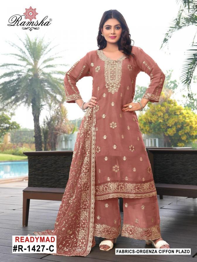 ramsha r 1427 nx organza chiffon readymade pakistani plazzo suit