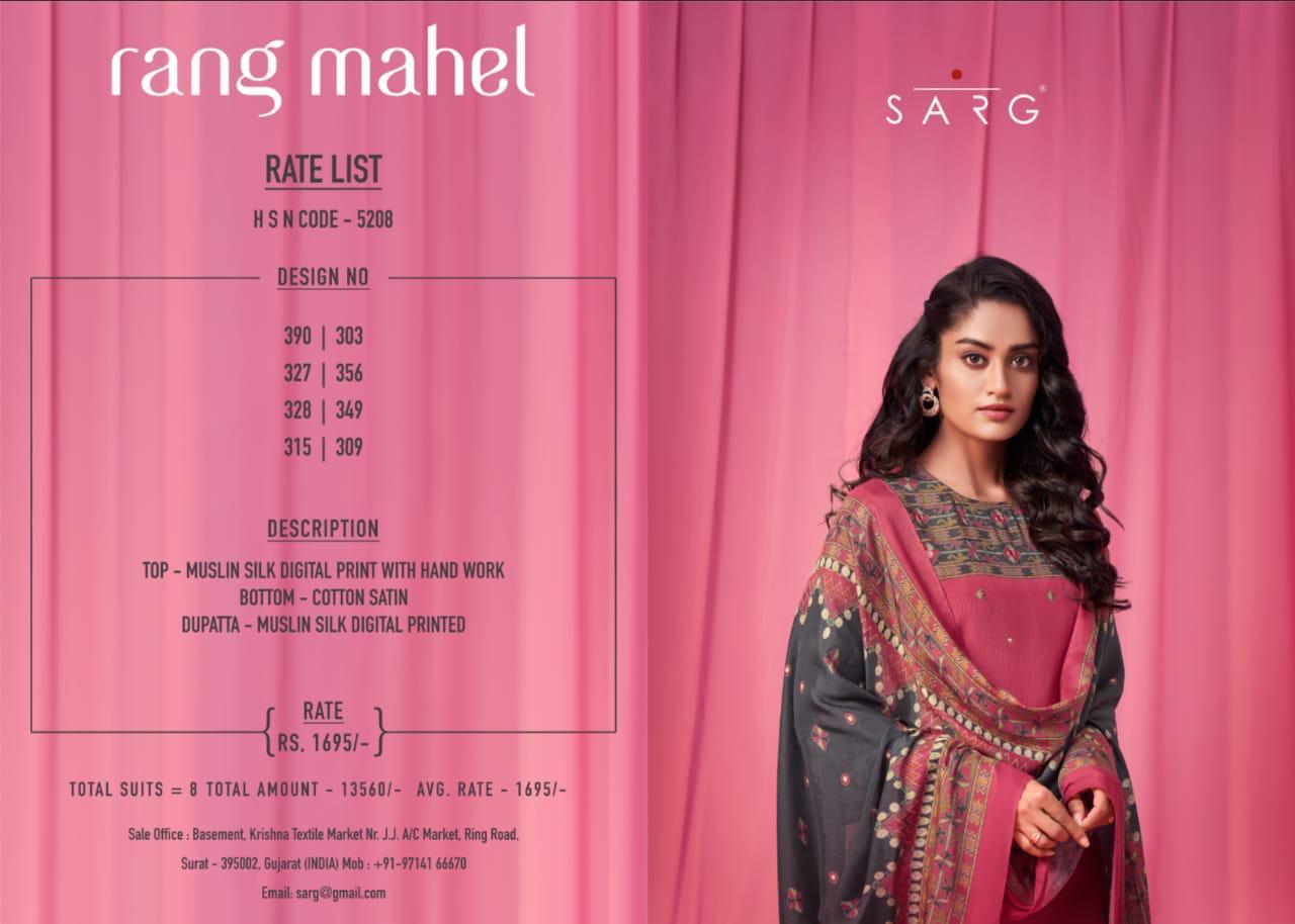 Rang Mahal By Sarg Pretty Look Muslin Silk Digital Prints Salwar Suits At Wholesale Price