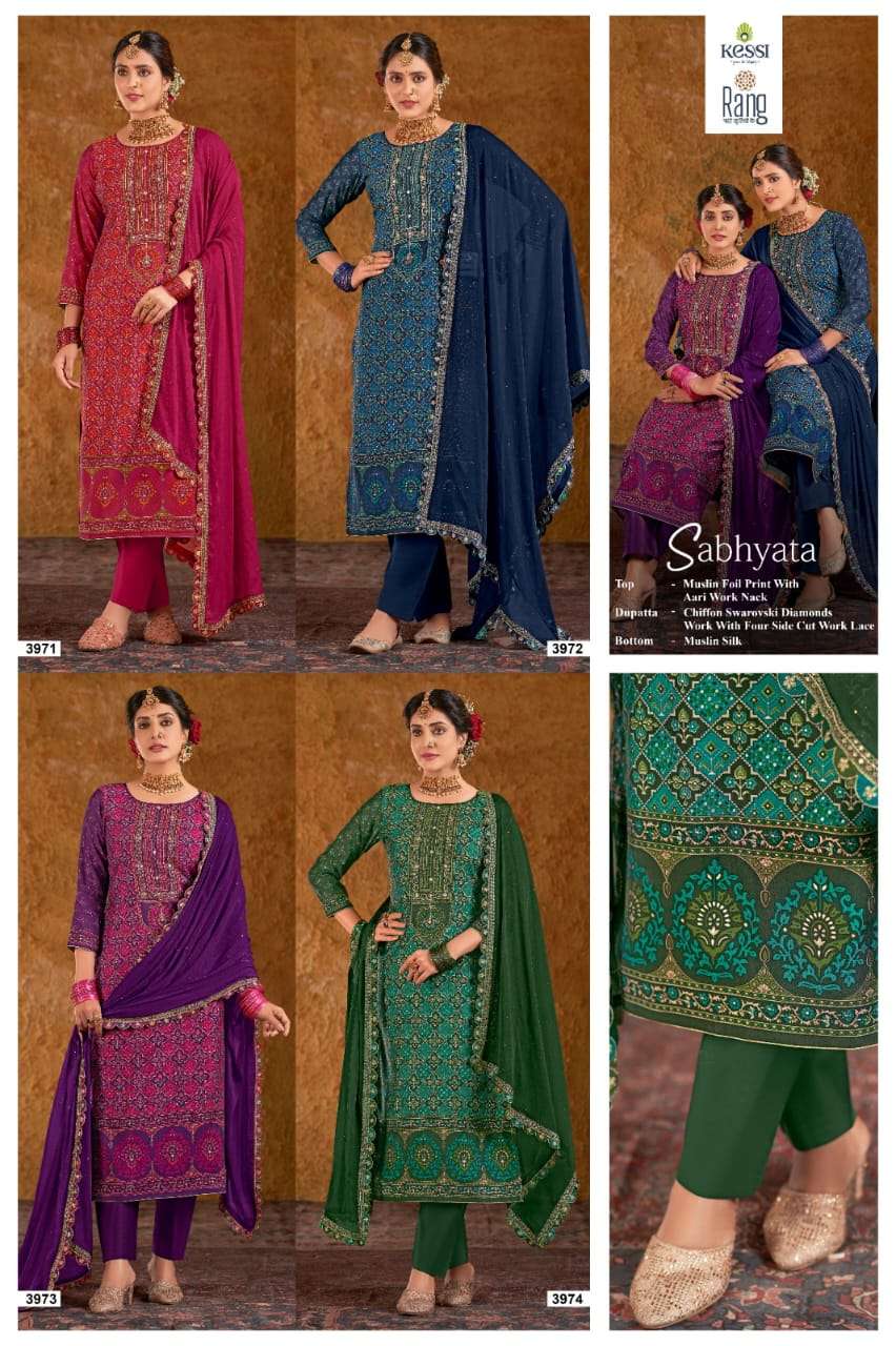 rang present sabhyata fancy muslin salwar kameez material with chiffon dupatta