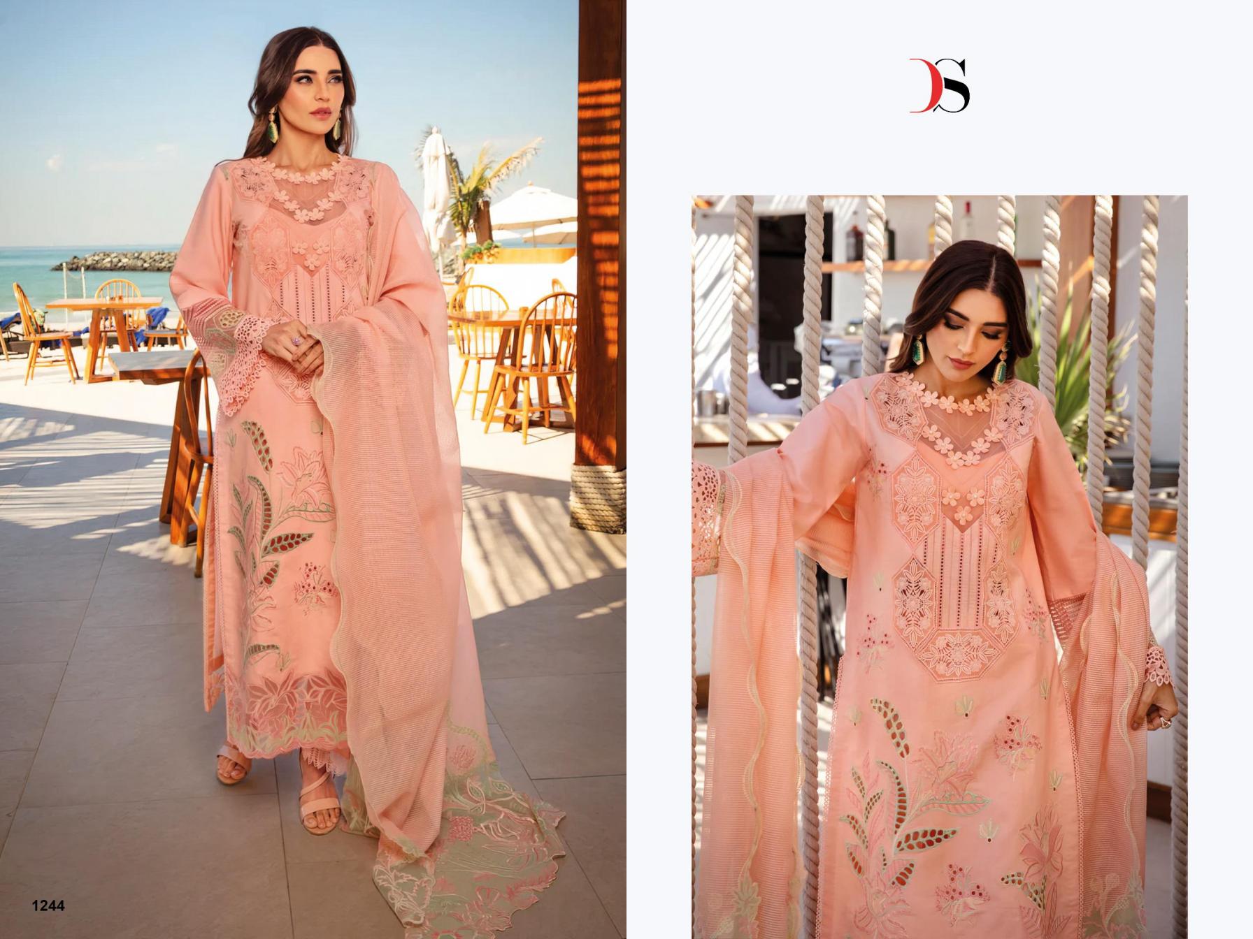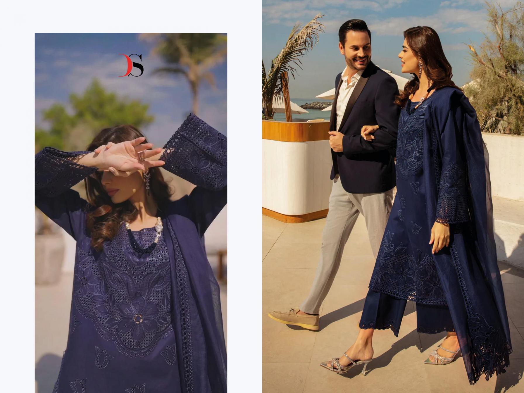 Rangrasiya Premium Lawn-25-2 by DEEPSY SUITS Top - Pure cotton with heavy self embroidery attached emb patches Bot - cotton solid Dup - Pure Cotton check with heavy embroidery Pcs: 4 *Rate - 1250+Gst Splendid Quality With Digitally Printed Fabric Quilted Fabric Used For best quality results |