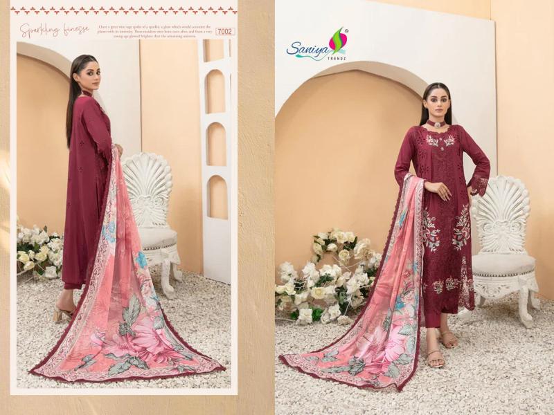 Saniya Trendz Presents Latest Collection Launched on 19-02-2025. Presenting Beautiful collection of 5 PCS with Unstitched .