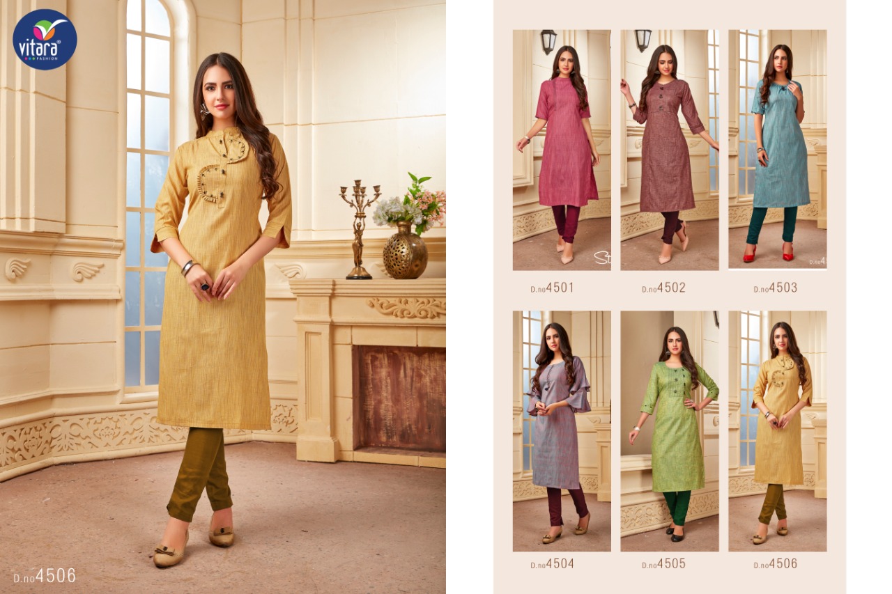 vitara fashion launches exclusive designer kurti Catalogue name- RANGARANG Fabric- fancy cotton fabric Size - M -38 ,L-40,XL-42,xxl-44 ☣Designs- 6 Rate:- 450/- GST +5% ADD ON BILL AMT |