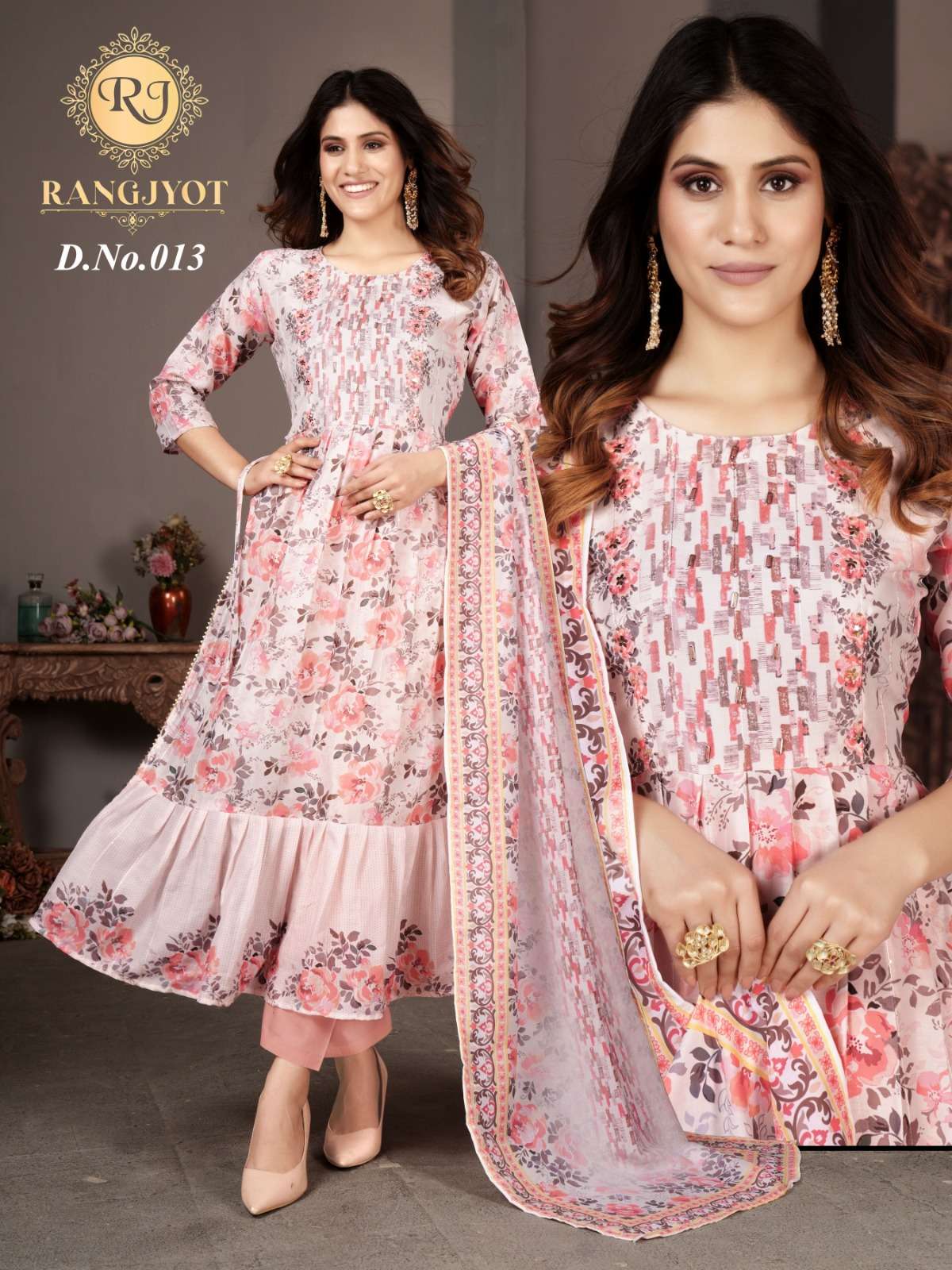 rangjyot d no 013 muslin digital printed three peace kurti combo set