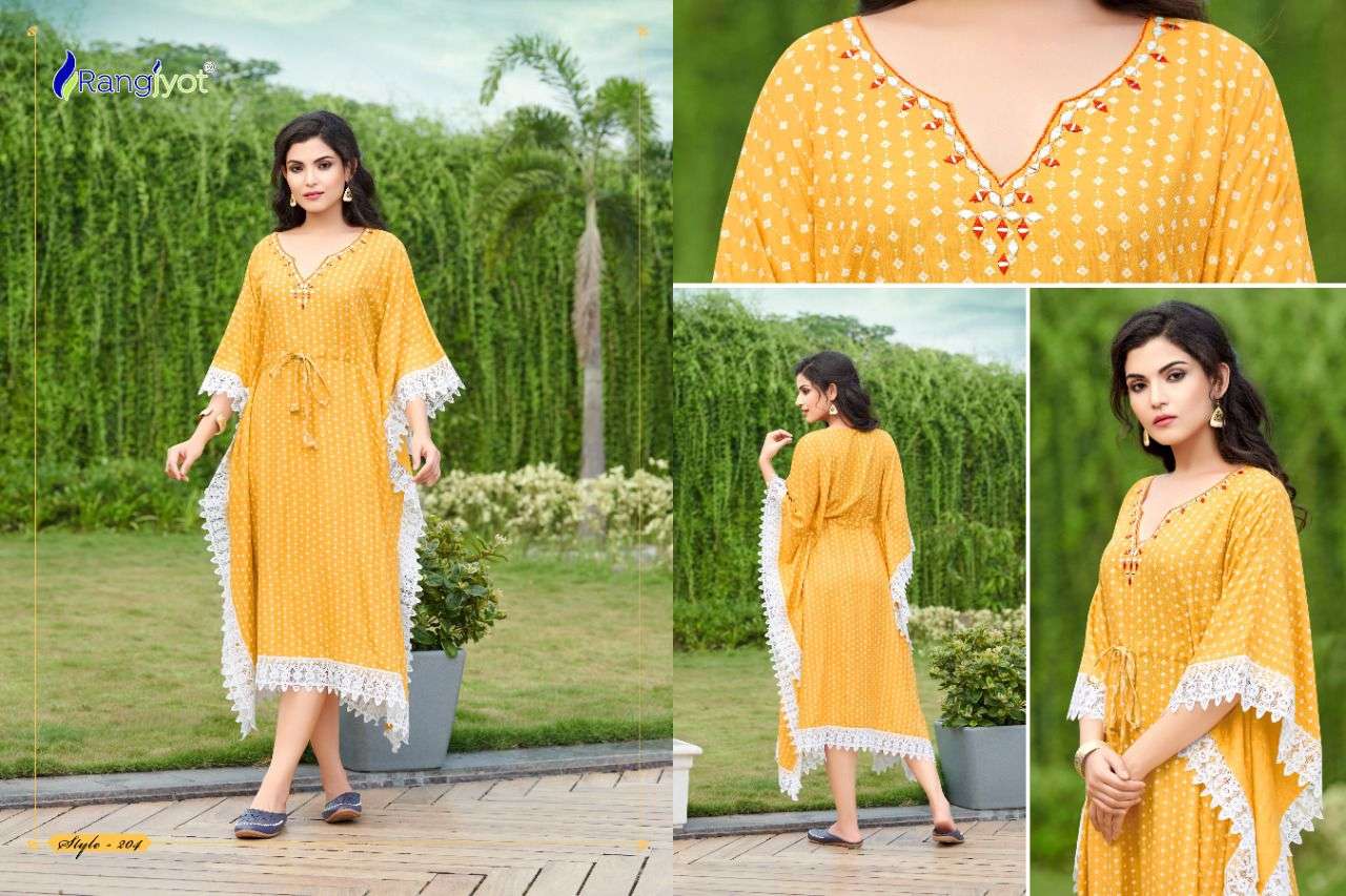 rangjyot fine heavy rayon fancy ladies kurtis