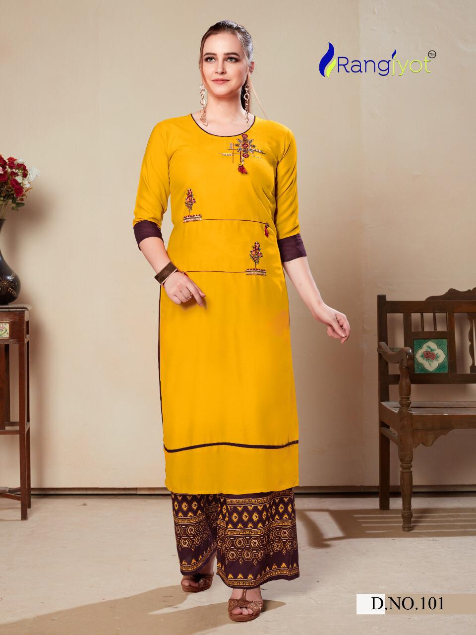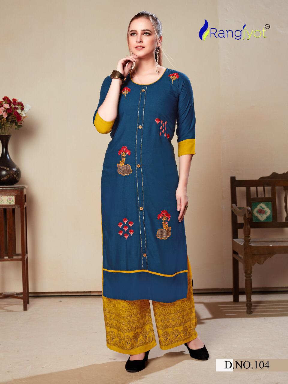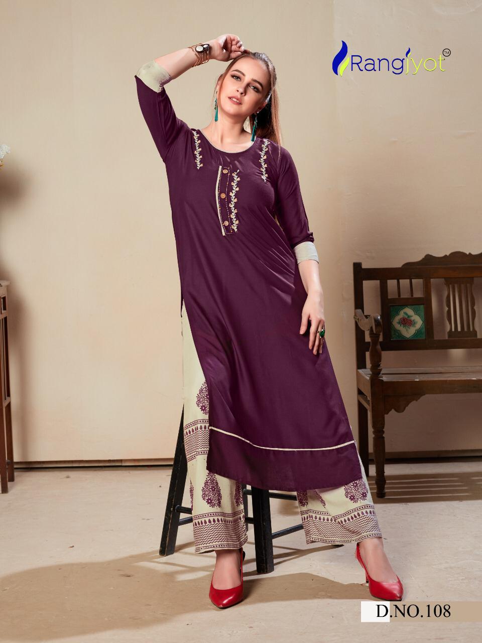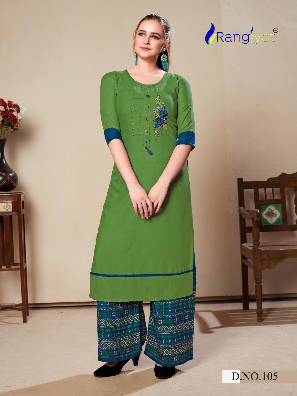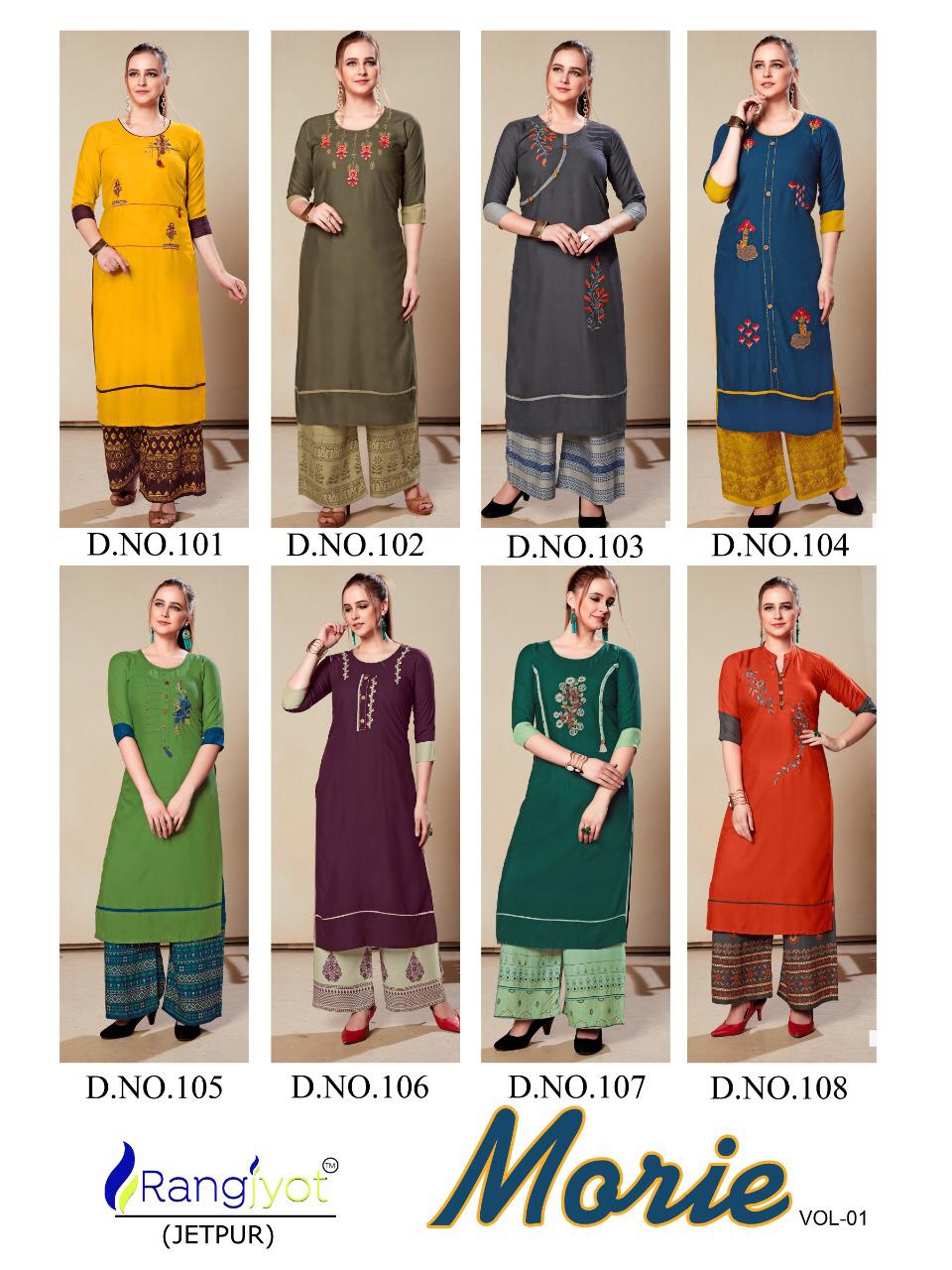 Rangjyot Present Morie Vol 1 Rayon Kurti Palazzo Set Collection