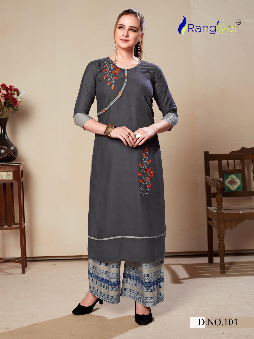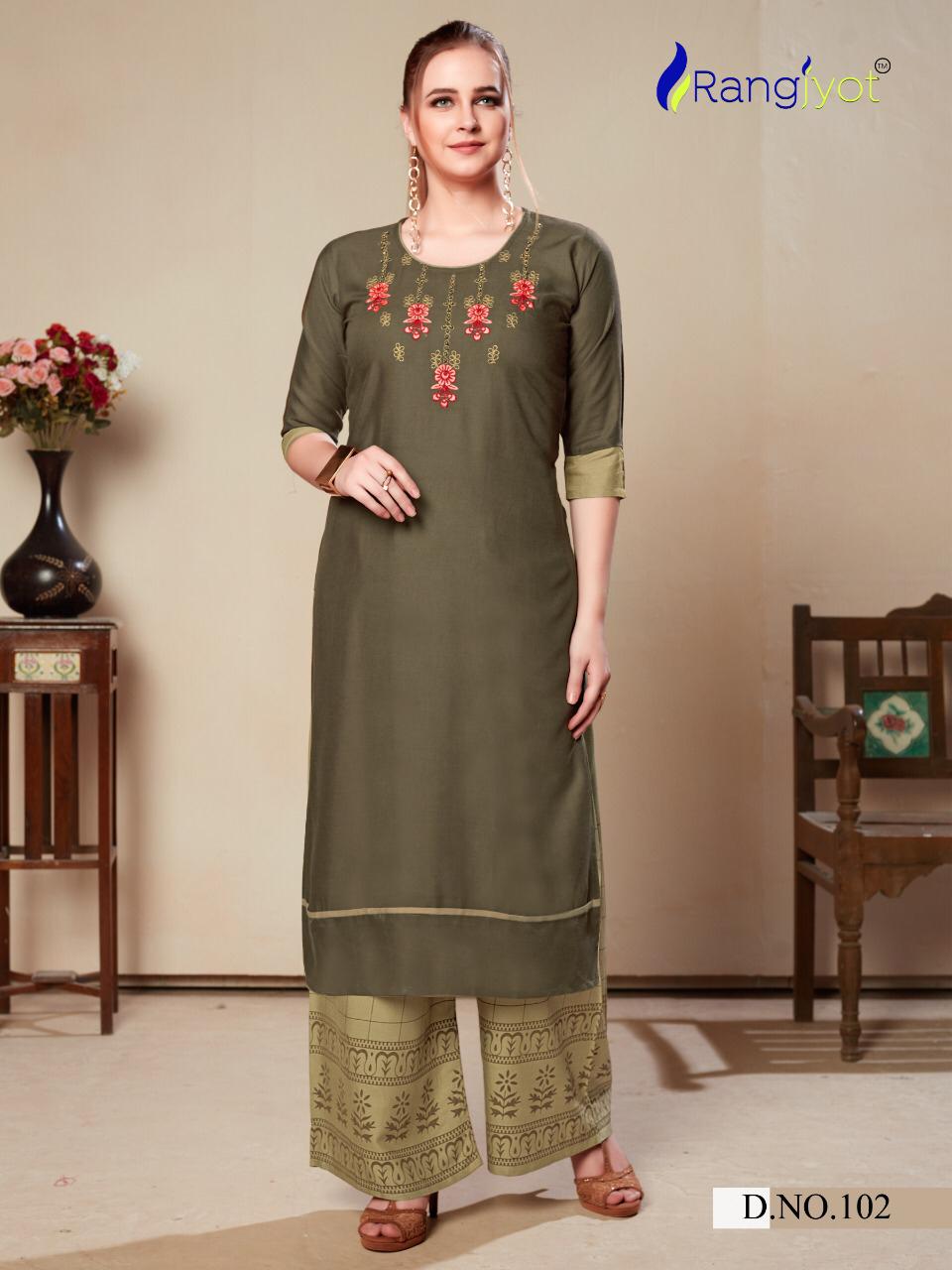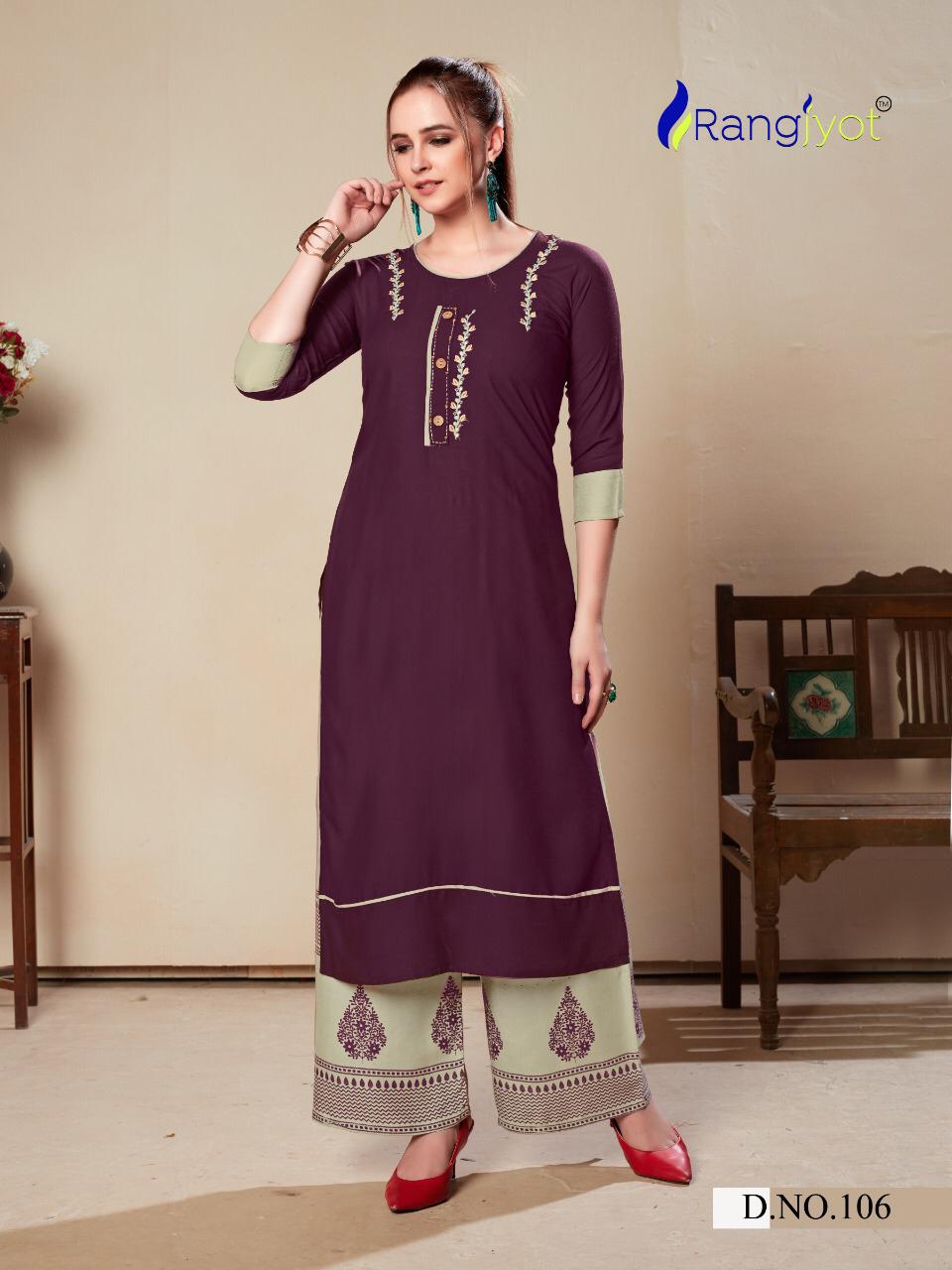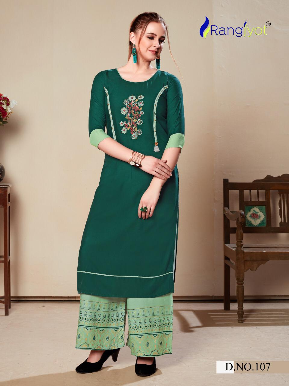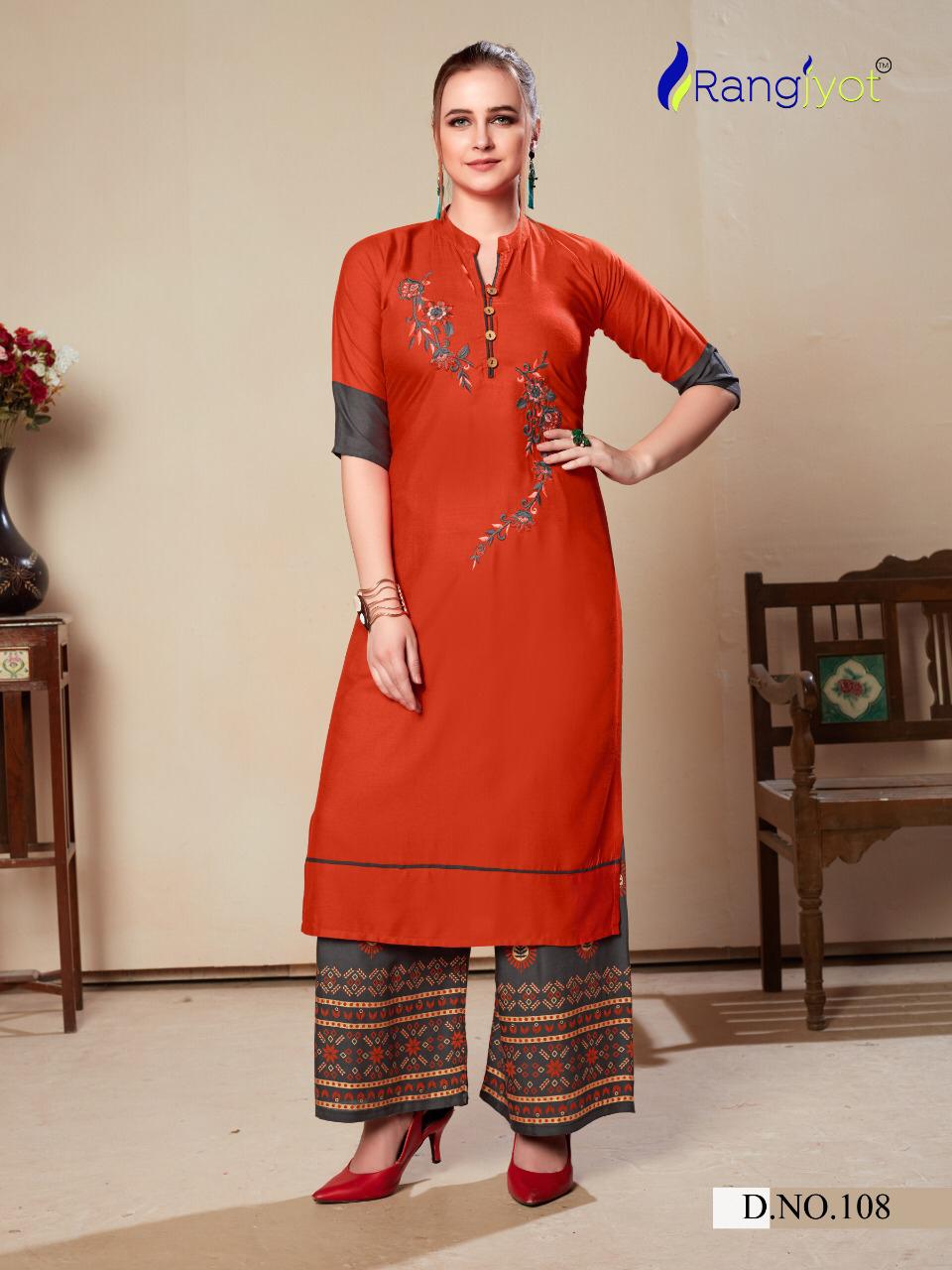 Rangjyot Present Morie Vol 1 Rayon Kurti Palazzo Set Collection