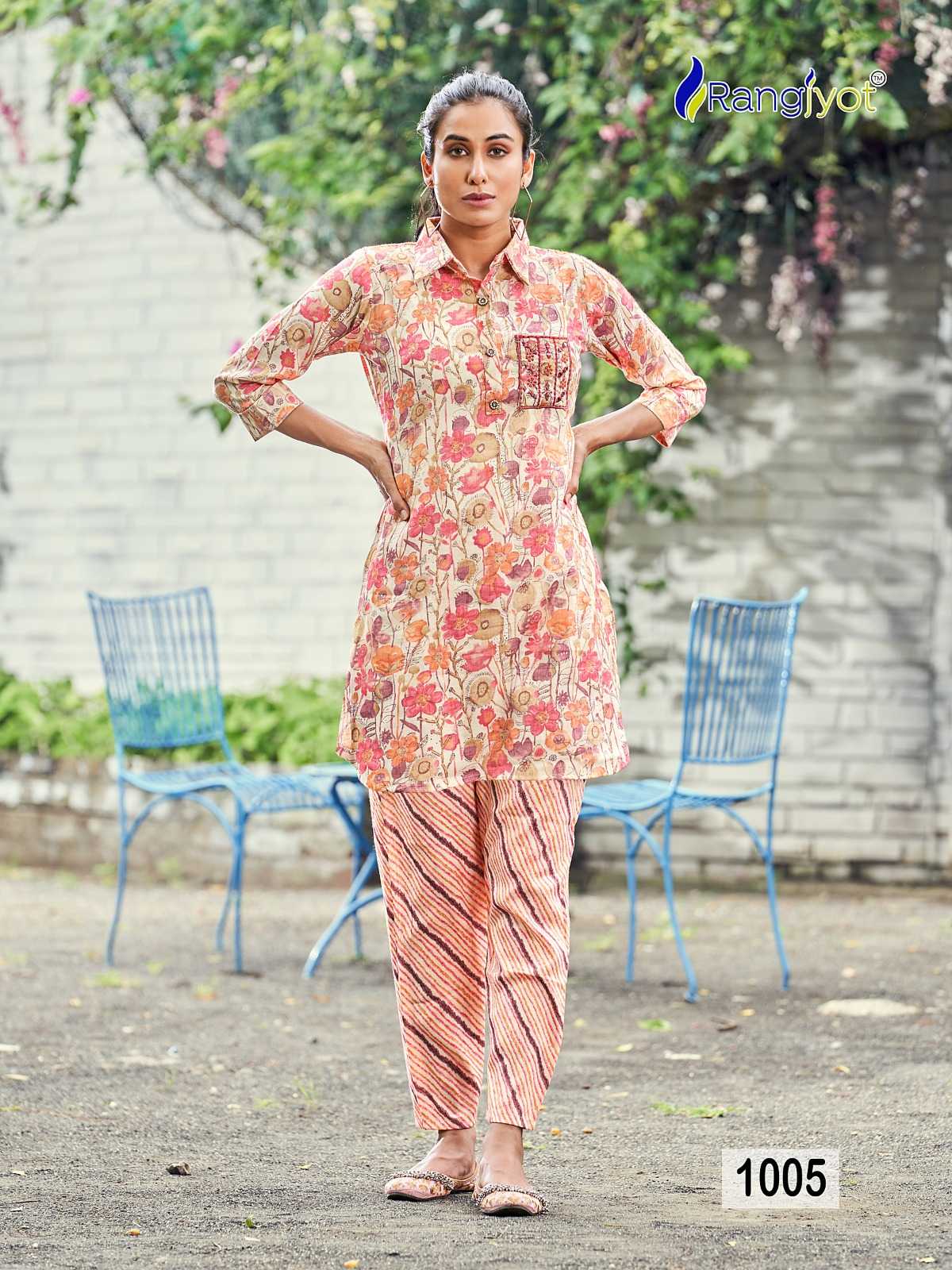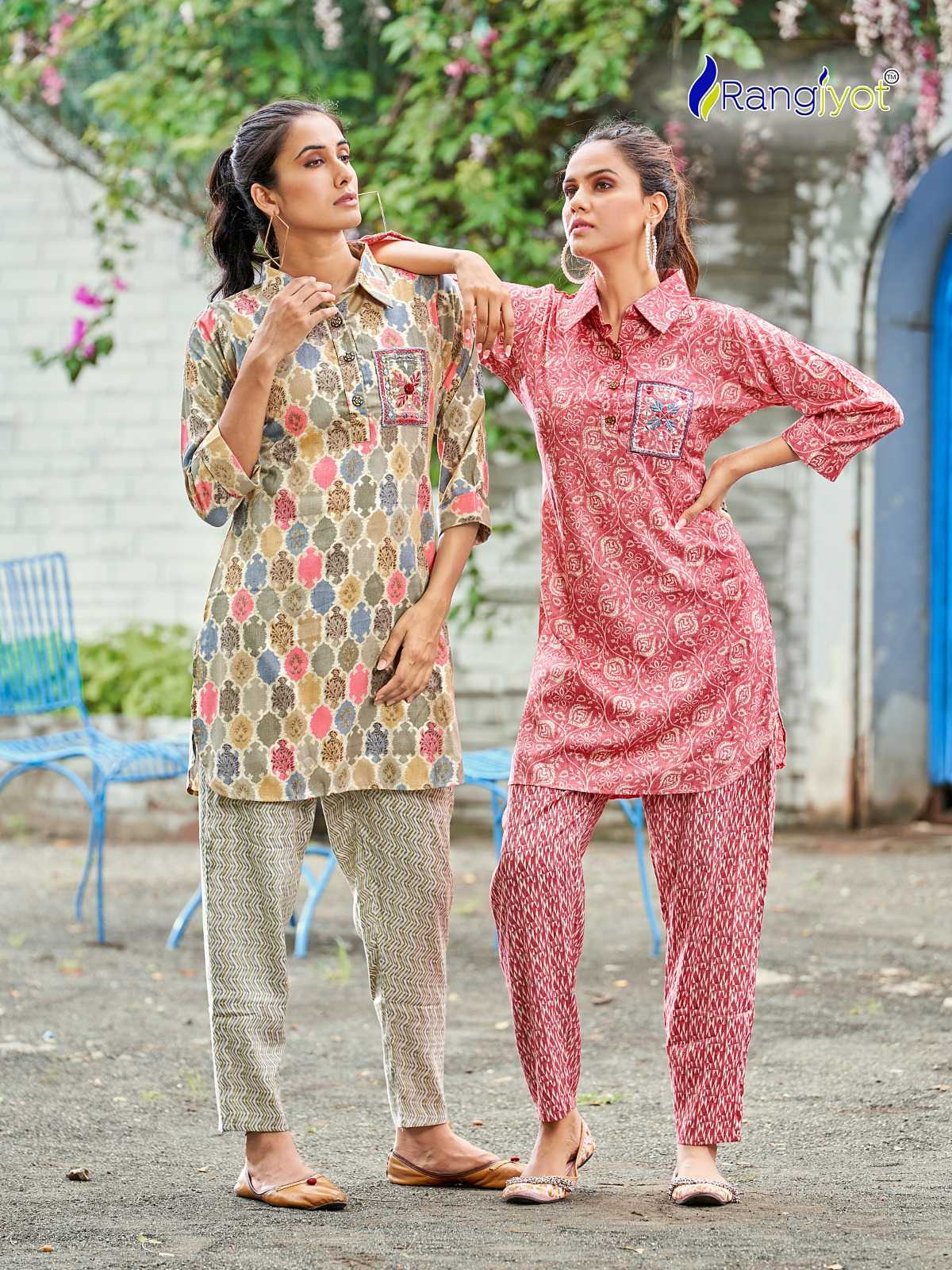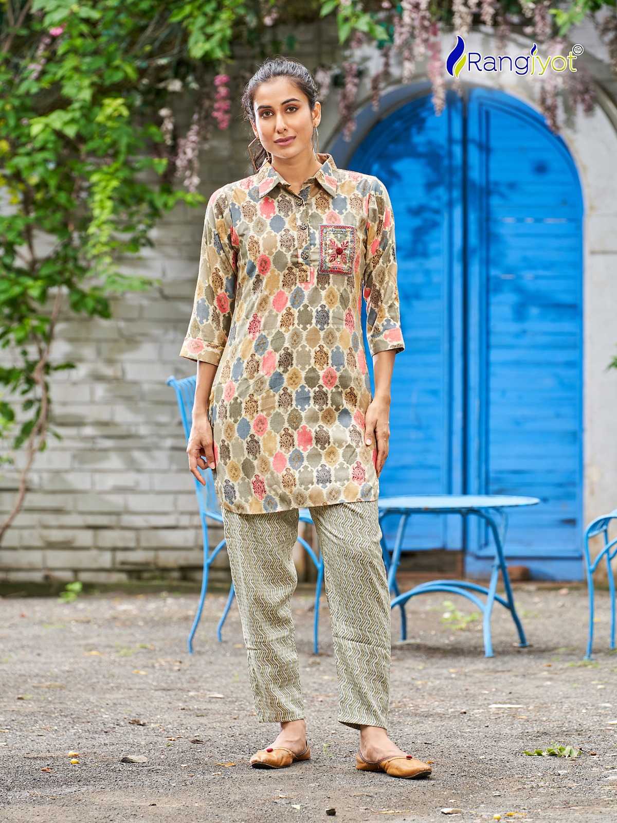 rangjyot shimoni vol 1 readymade kurti pant elegant katha handwork supplier