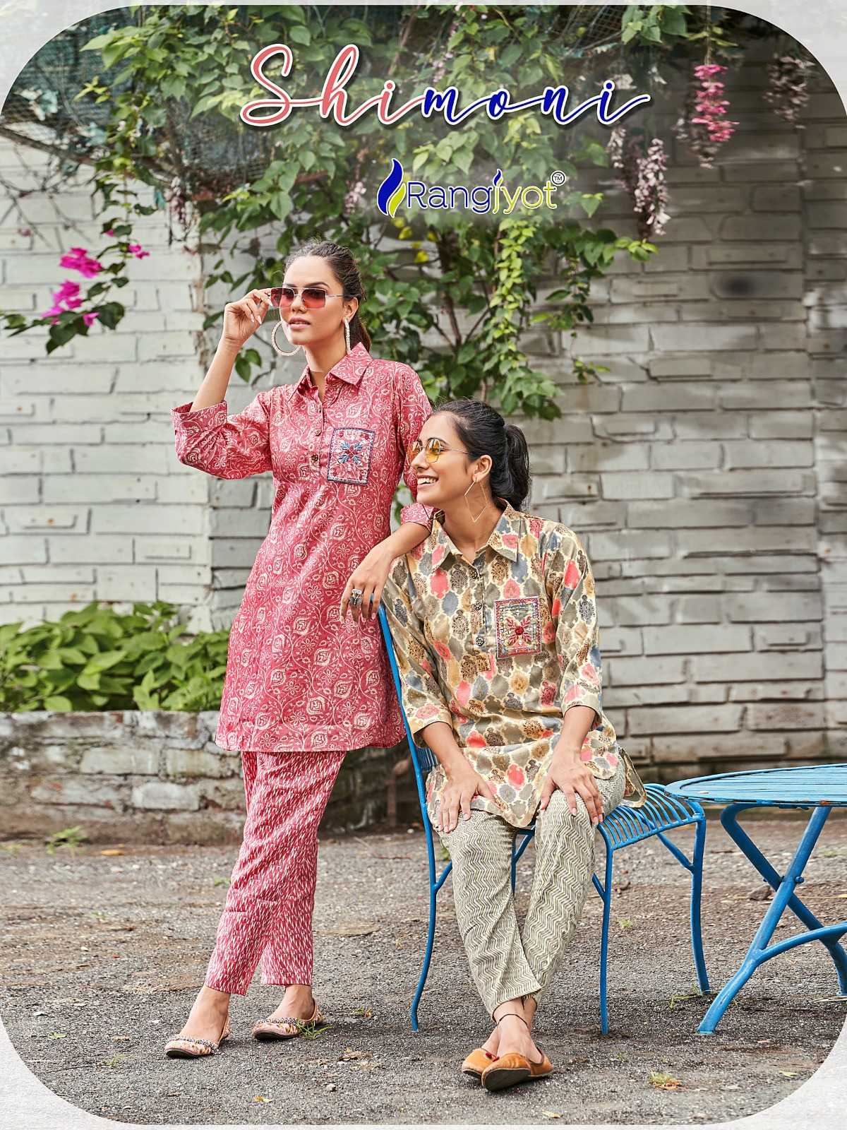 Rangjyot 🎗 Elevate your style with Shimoni Vol-1 🦋 👘 Top - Premium Capsule Foil Print With Hand And Katha Work. 👖Bottom - Premium Capsule Print 🍄 Designs - 5 Pcs 📝 Size - M To XXL 🪙 Rate - 785/- + GST 🛍 Dispatch - 2- 3 Days A Product By - Siya Dresses Note - No Return Goods Accepted Colors May Vary Slightly Due To The Light Effect During Photography |