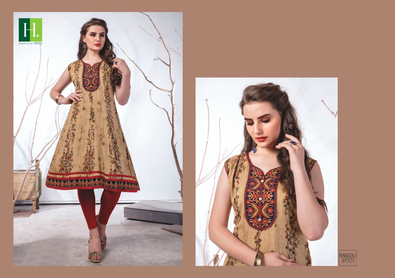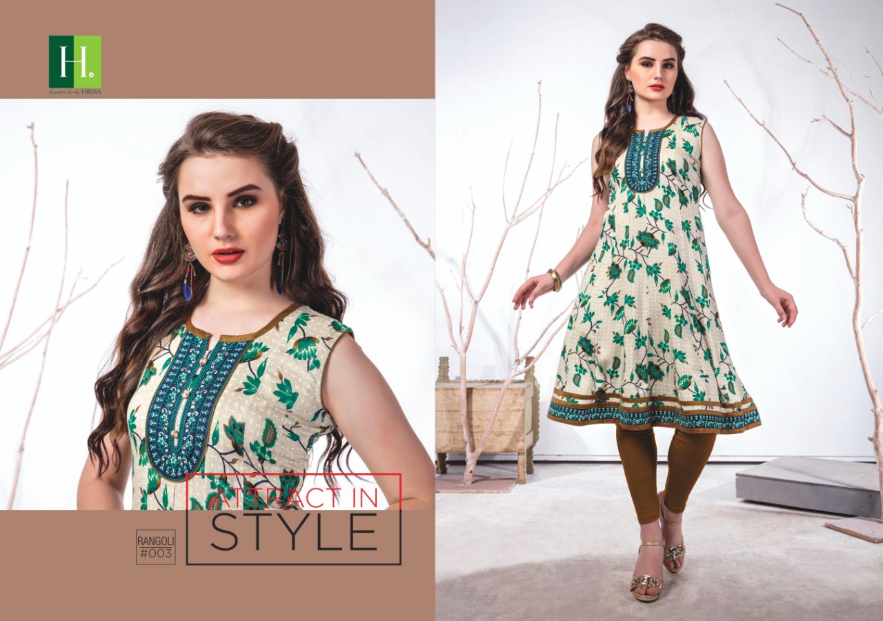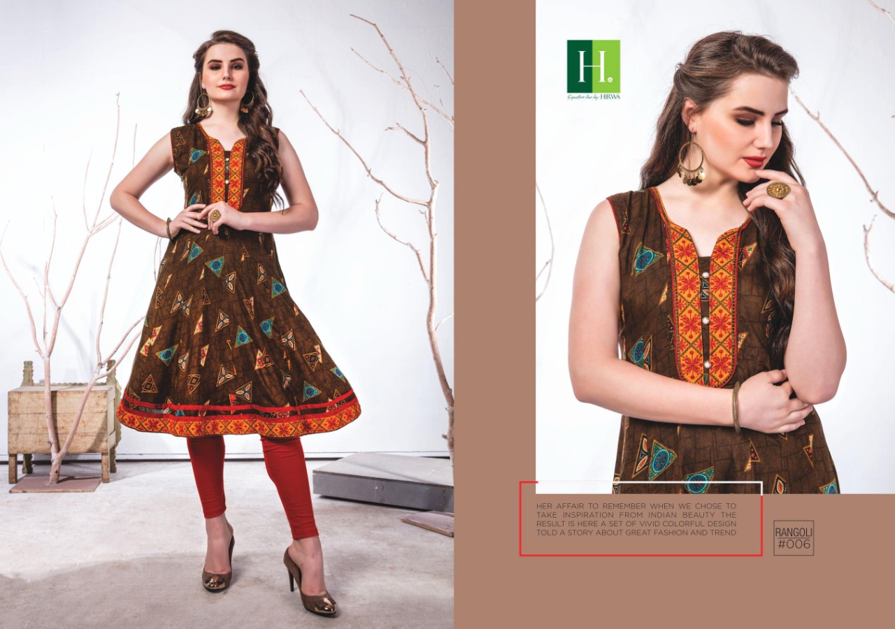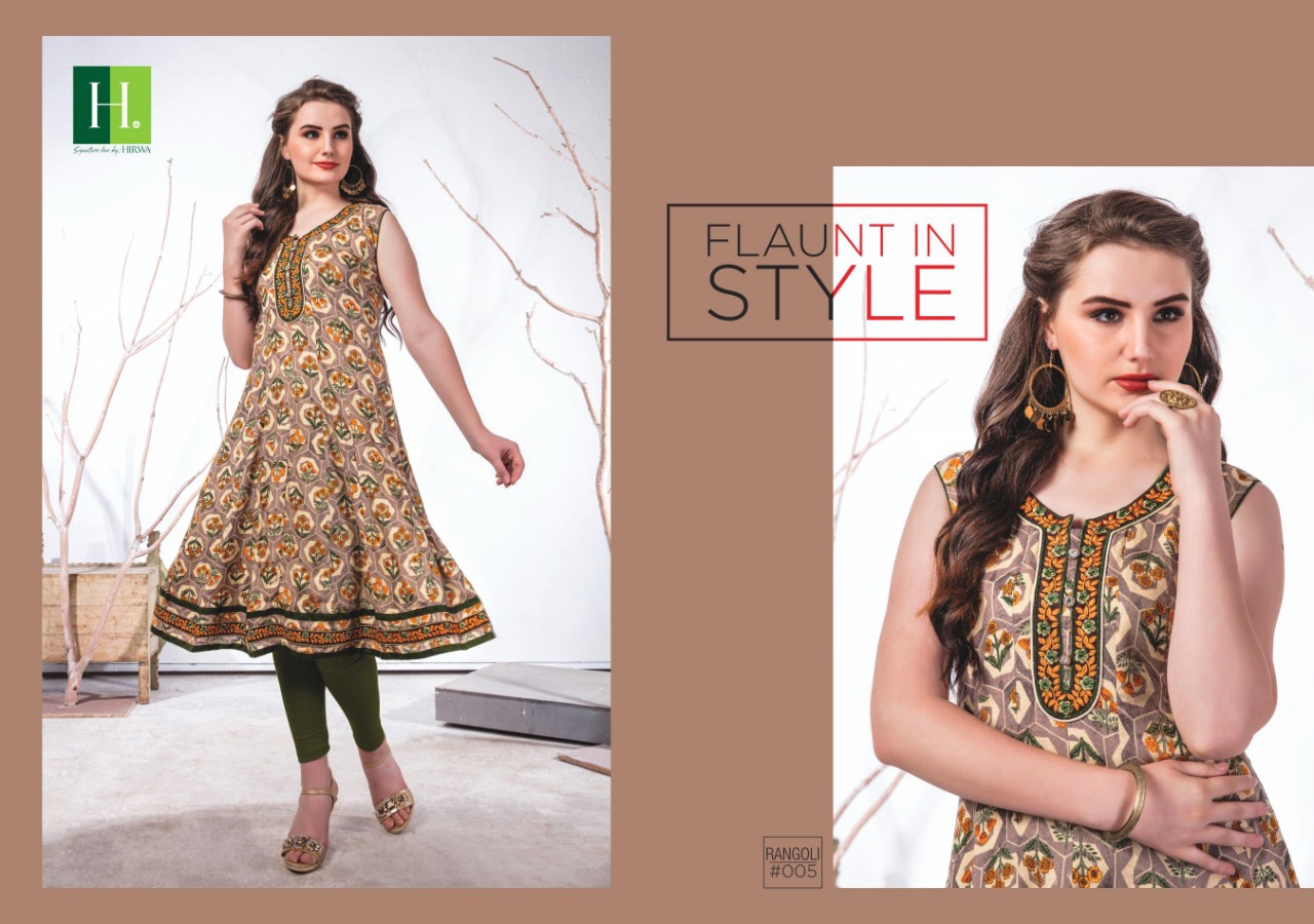 Rangoli Vol 7 By Hirwa Rayon Printed Anarkali Style Kurti At Best Price