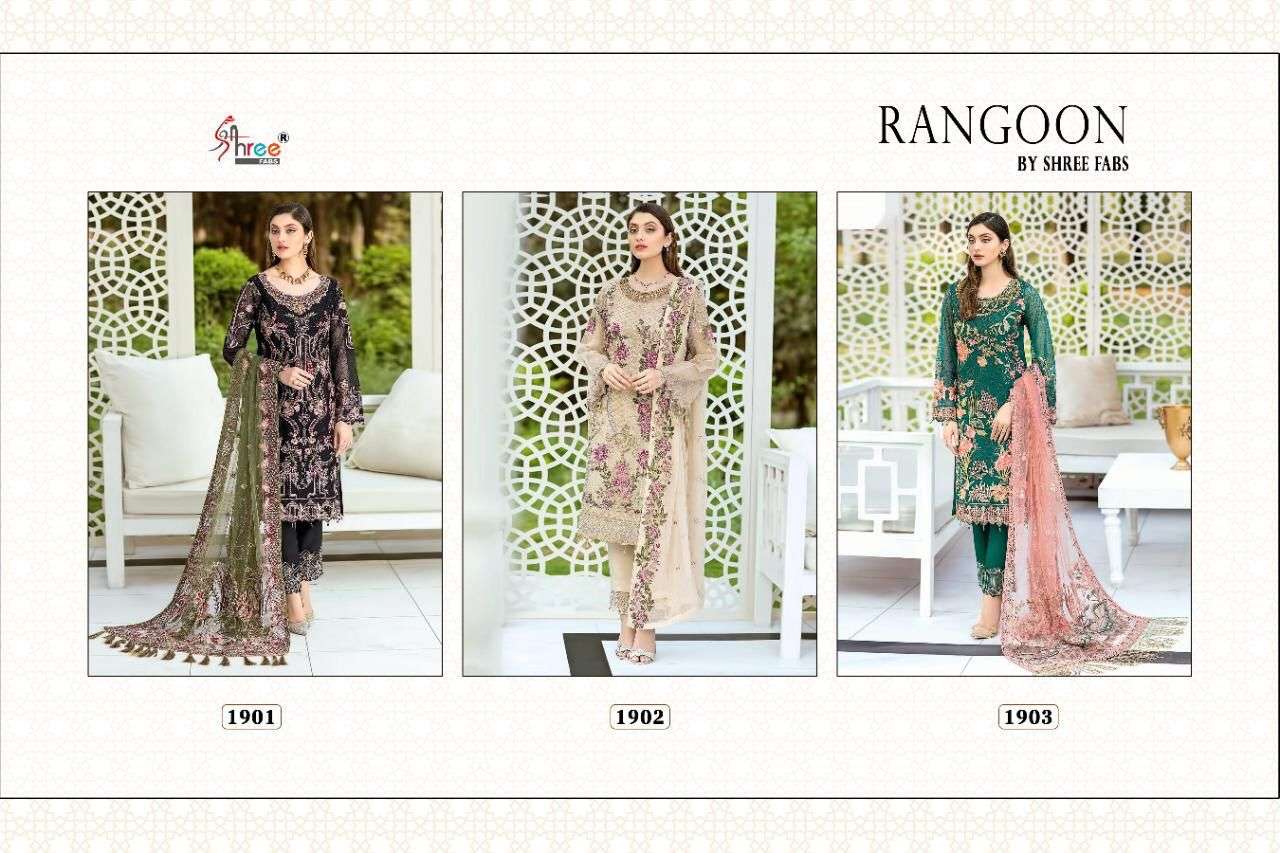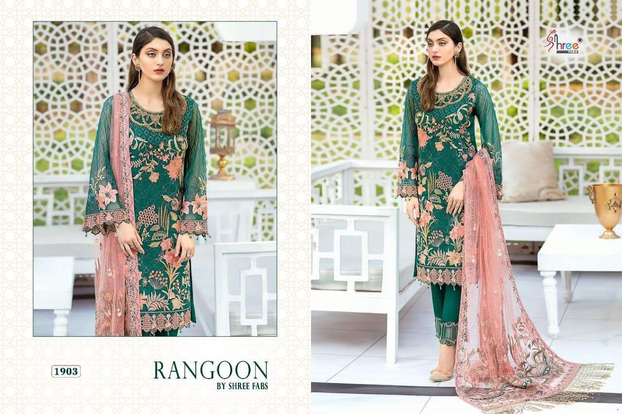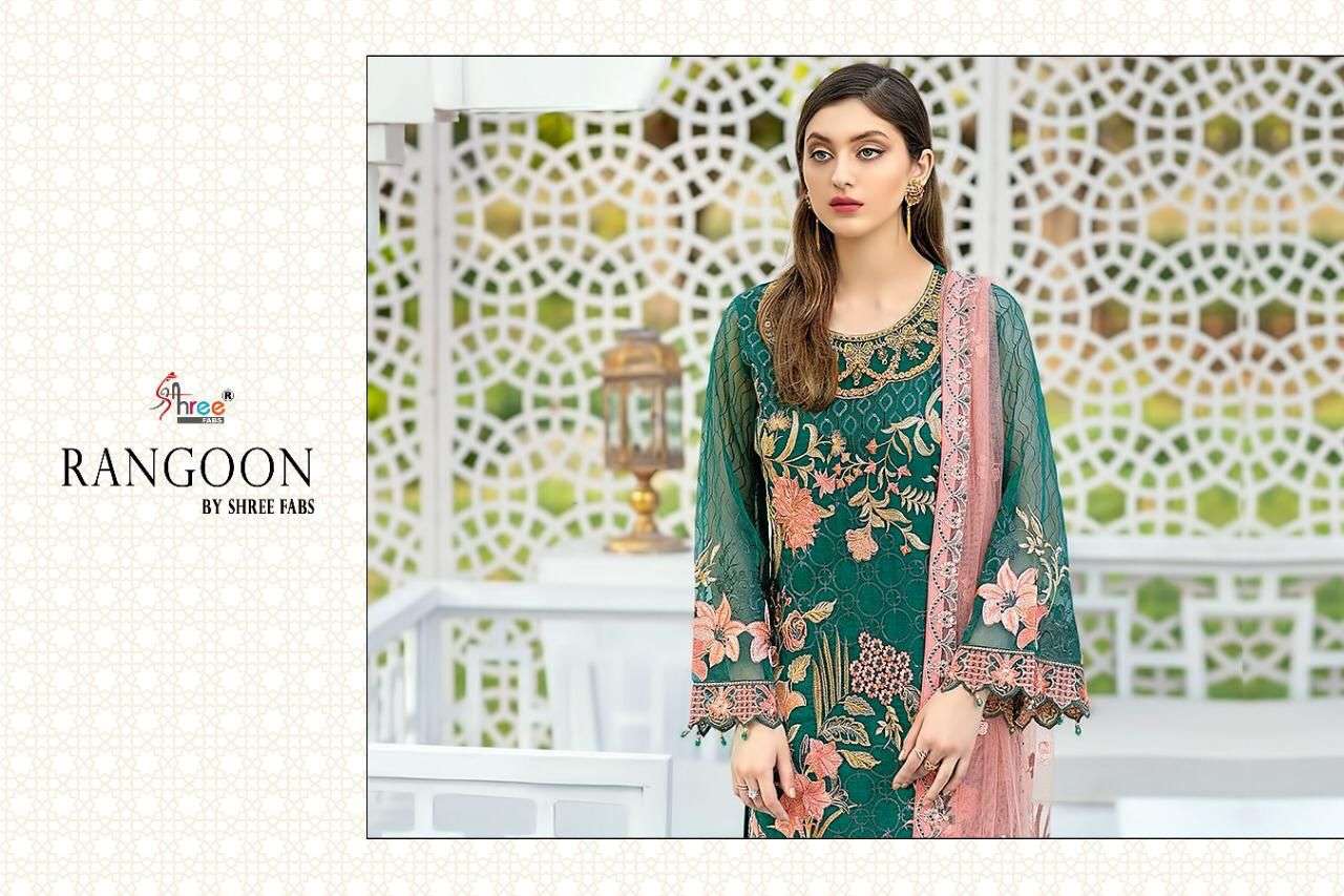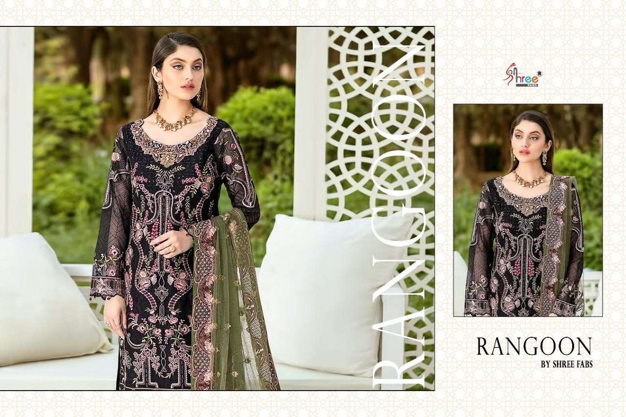 RANGOON BY SHREE FABSÂ A PREMIUM RANGE 3 DESIGN CATLOUGE QUALITY AS LIKE ORIGNALÂ TOP JORGET WITH HEAVY EMBRODERY & KHATLI WORK IN NECK PATCH BOTTOM INNER SANTOONÂ DUPPTA EMBRODERD NETÂ RATE 1299 DESIGNS 3 |