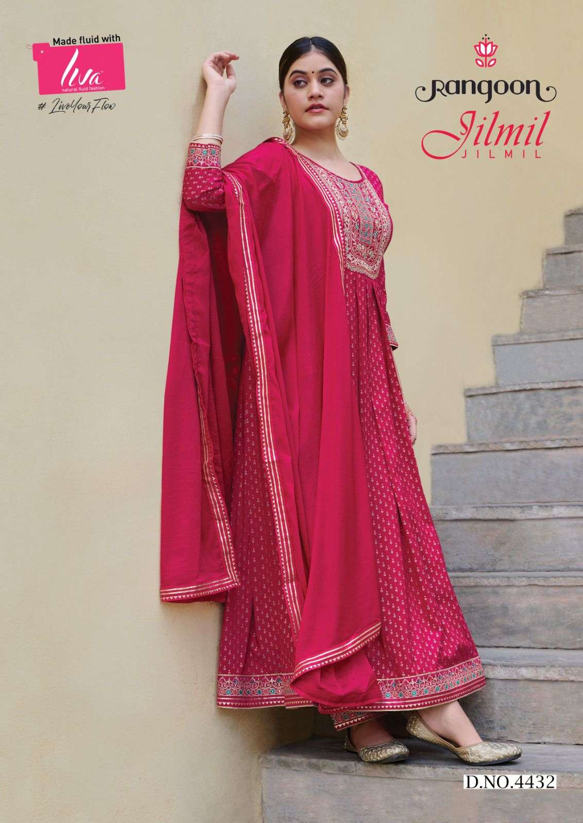 rangoon launch jilmil fancy festive wear readymade anarkali suits