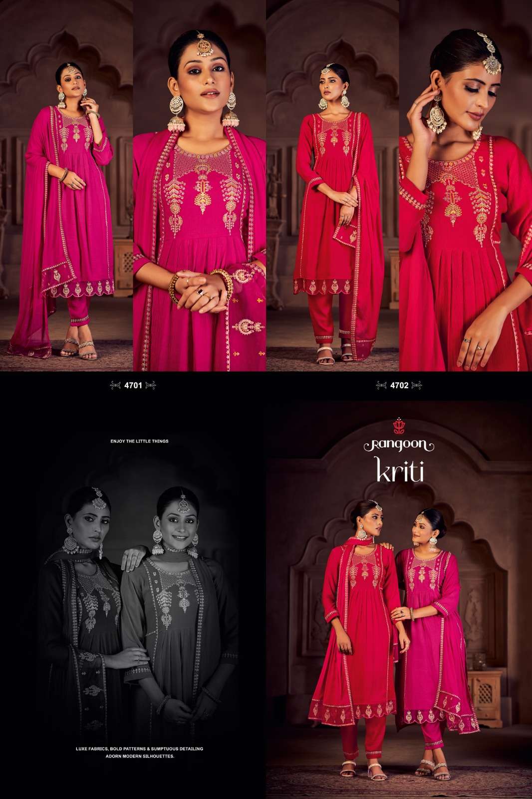 rangoon present kriti readymade salwar kameez with fancy embroidery work