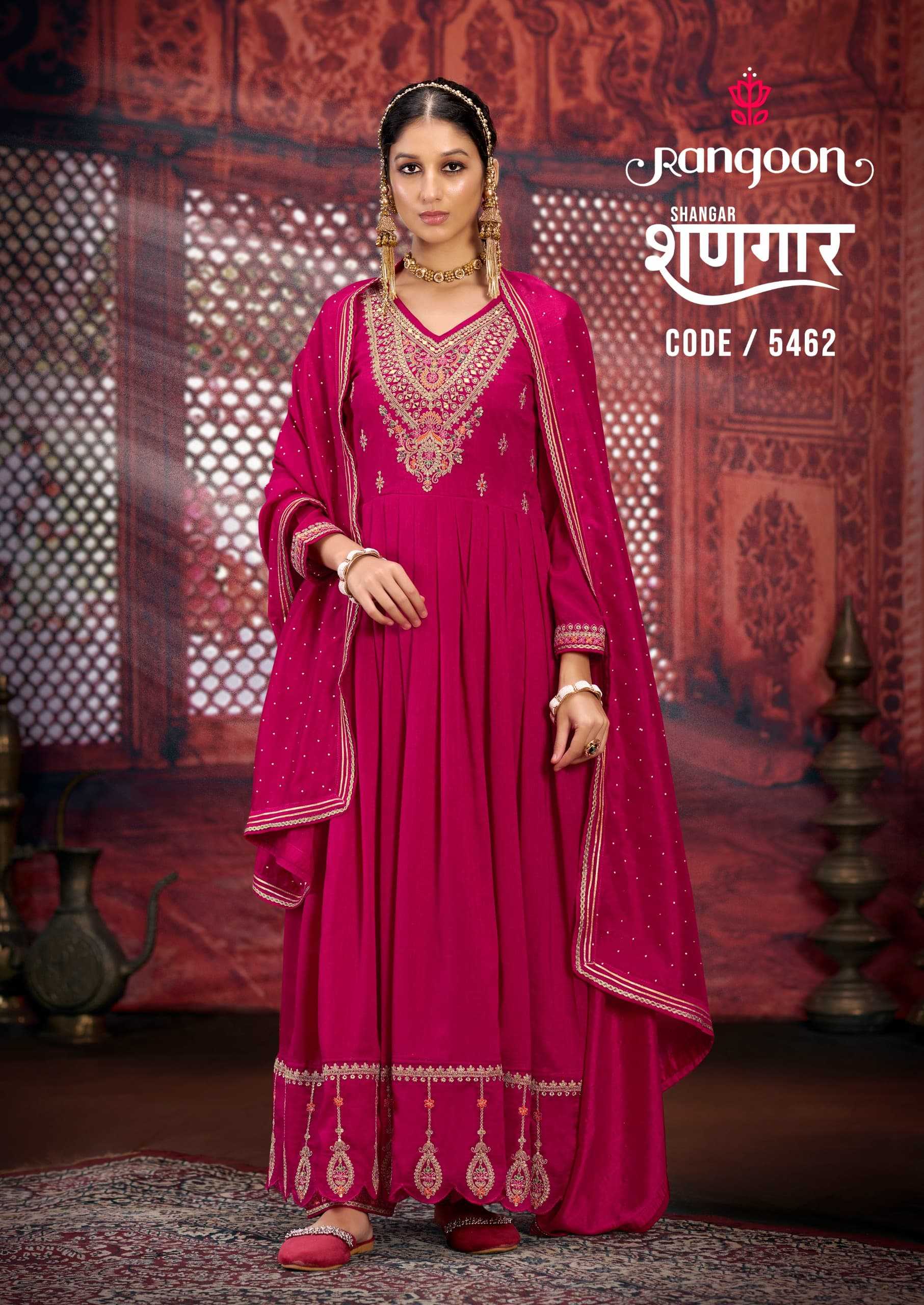 rangoon shangar anarkali style silk full stitch designer kurti pant with dupatta