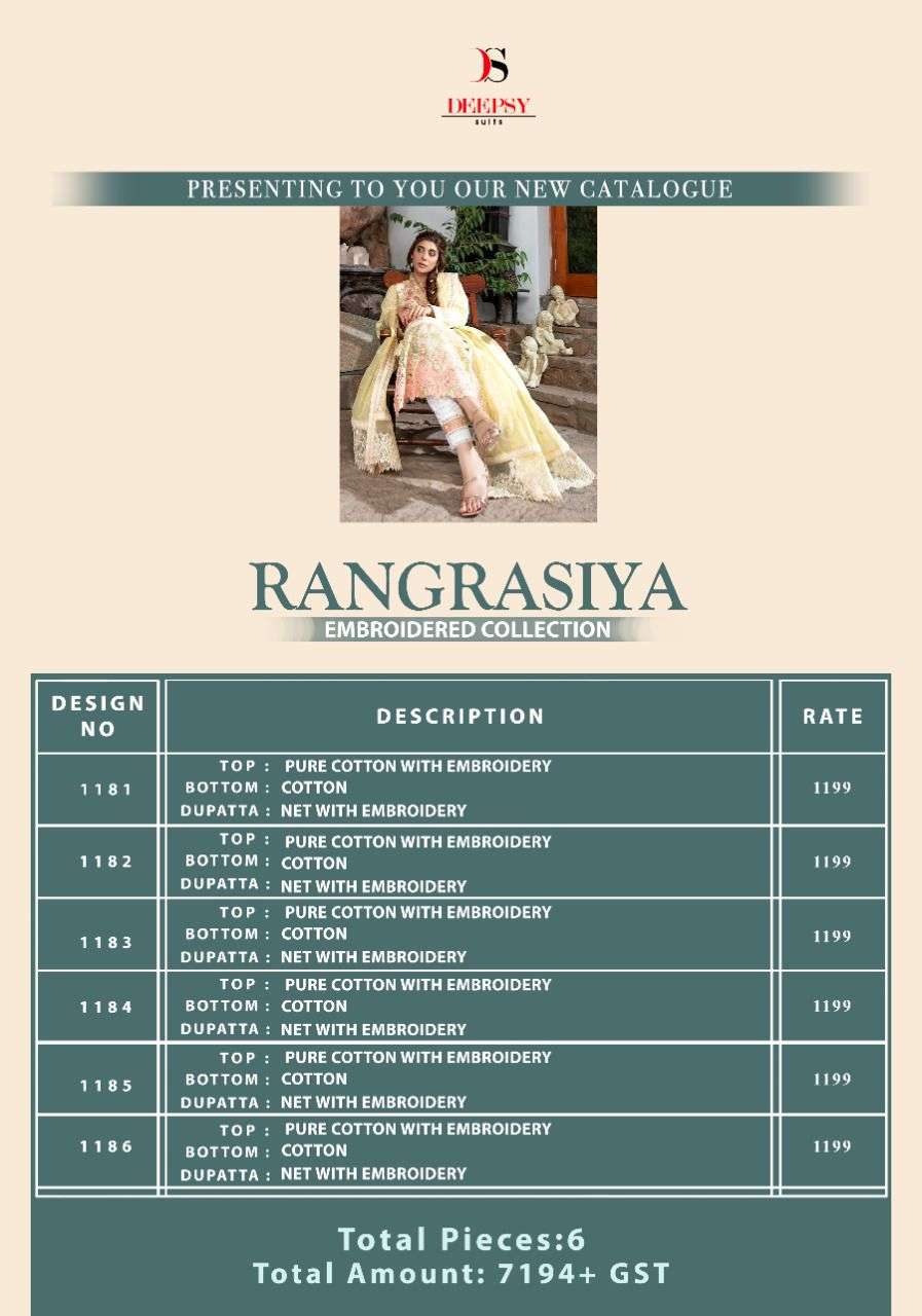 Rangrasiya embroidered collcetion by DEEPSY SUITS Top - Pure Cotton       With Embroidery Bot - Cotton solid Dup - Net with  embroidery Rate: 1199+Gst Quilted Fabric Used For best quality results |