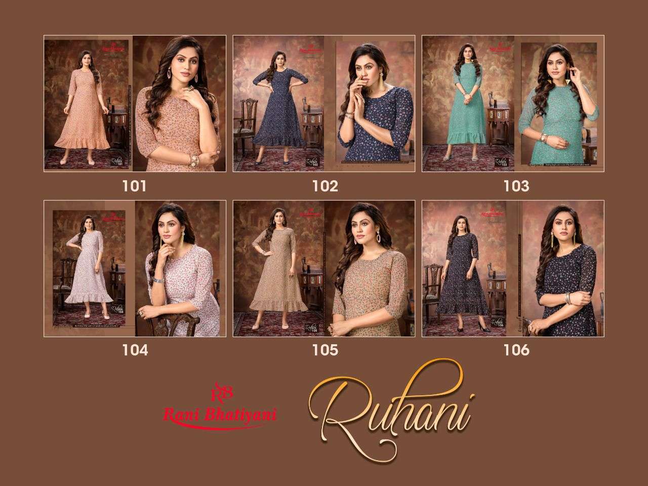 RANi BHATIYANI ...❤❤ Presenting our new catalogue 🌟 RUHANI Vol 1🌟 Fabric Detail⬇ 💃Designs: 6 pcs catloge Rate- 499/- ⏱Dispatching- monday |