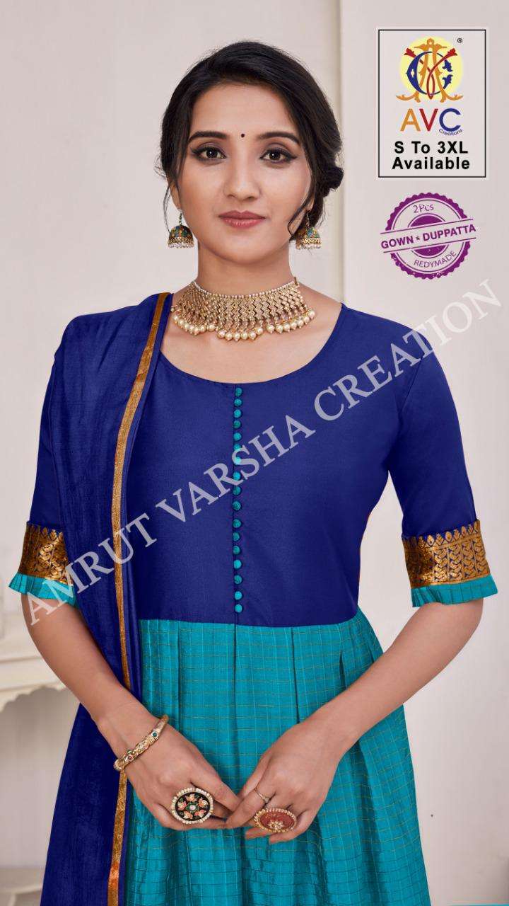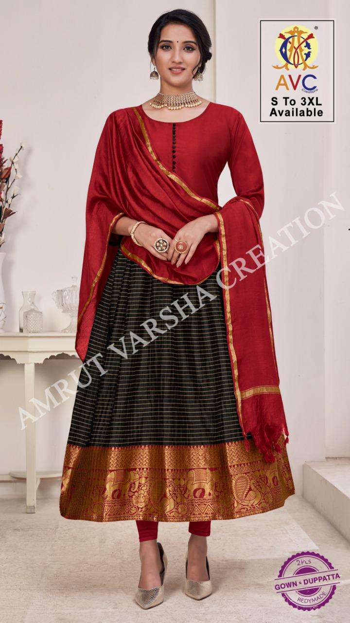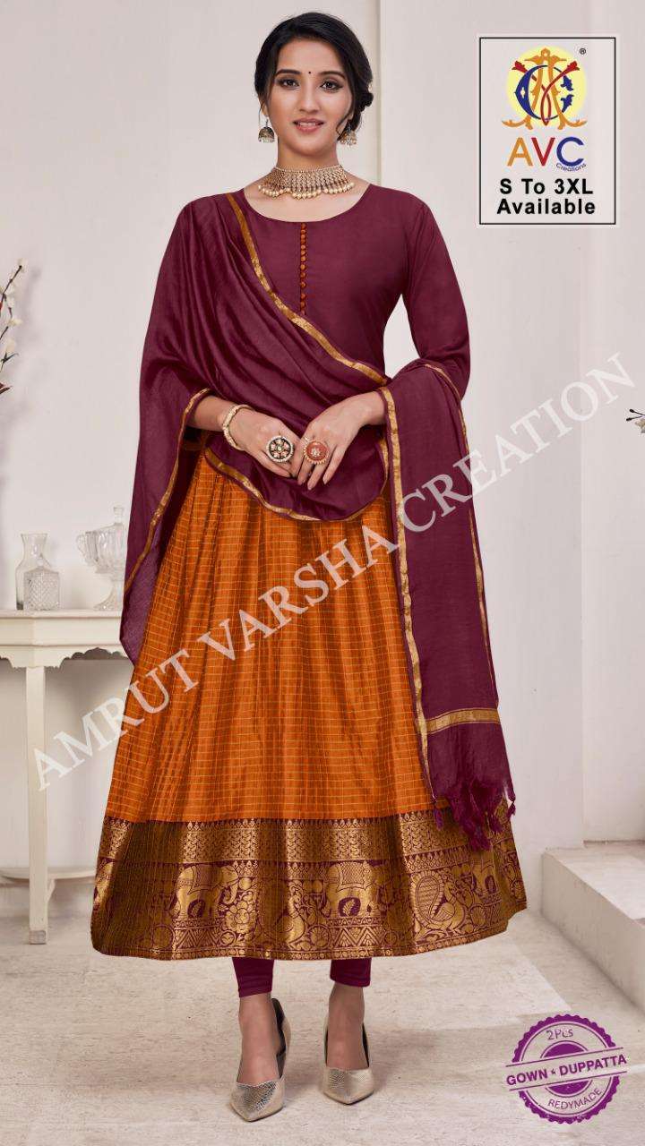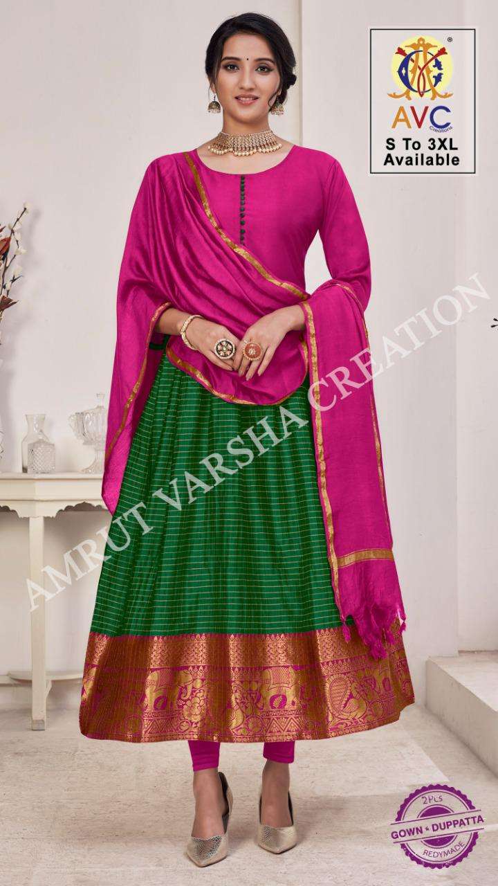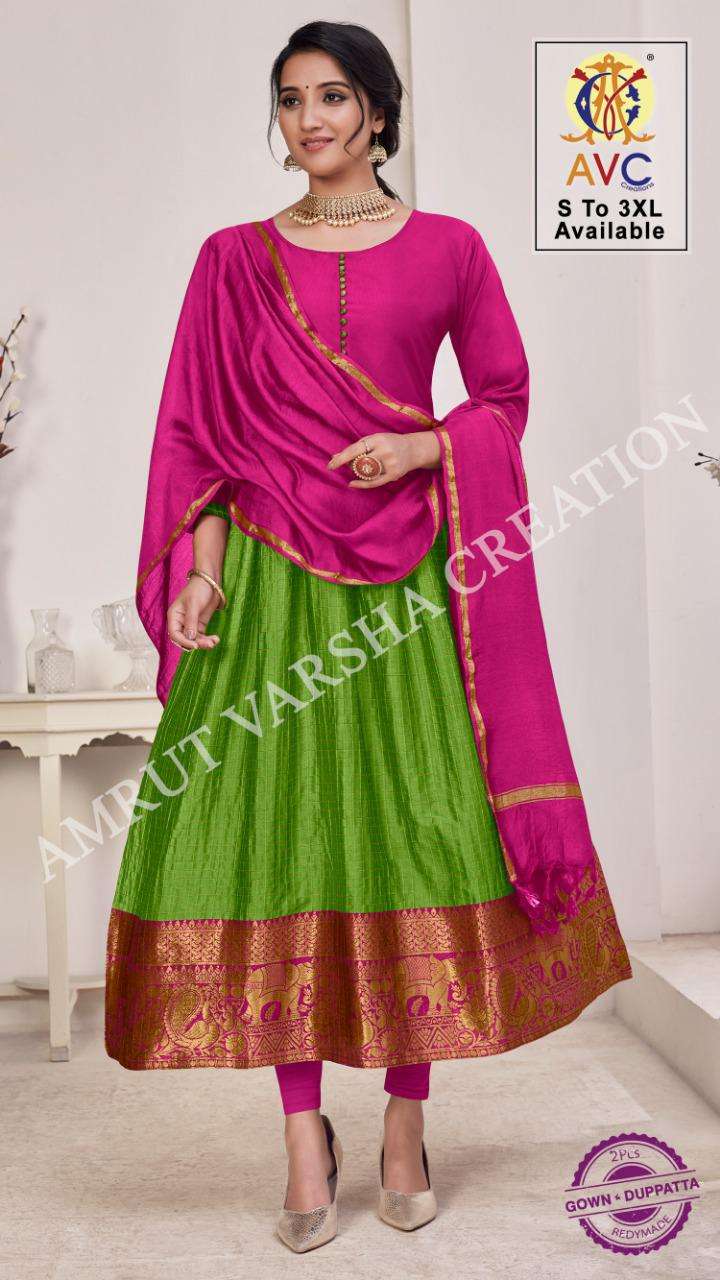 rani patthu by avc lichi silk jacquard readymade long gown with dupatta